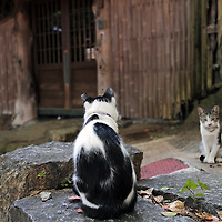날카로운 눈초리의 오기지마 마을 고양이, 오기지마 섬의 고양이들은 왠지 시크한 것 같습니다.