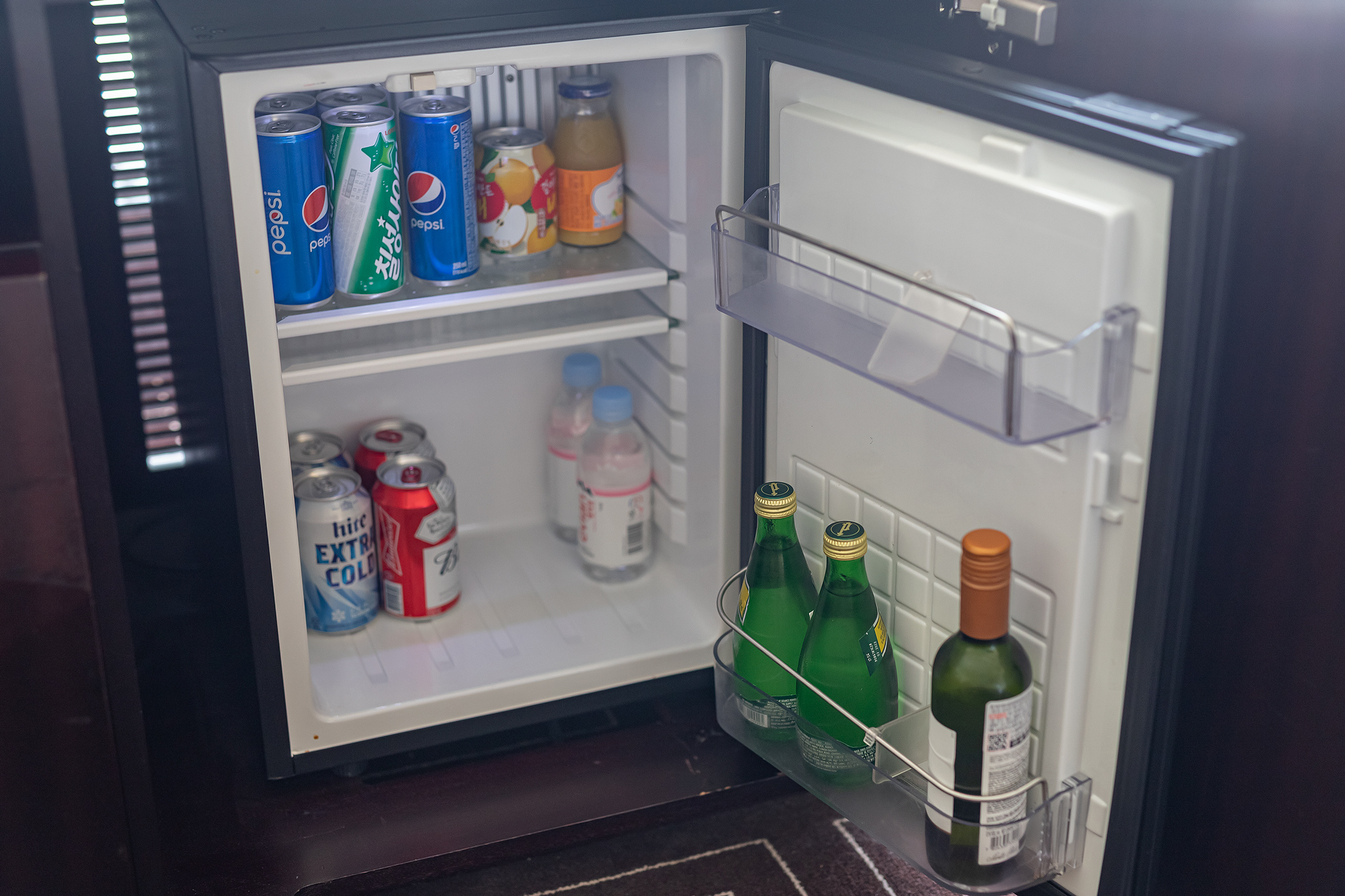 미니 냉장고 안에도 음료와 술이 들어 있었습니다. (별도 요금)
