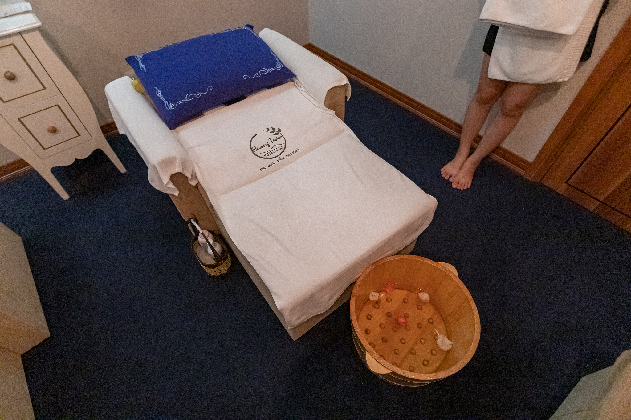 다른 스파와는 조금 다른 모양의 침대가 있었는데 완전히 눕지 않고 살짝 위가 올라가 있고 팔걸이도 있어 편안했습니다.