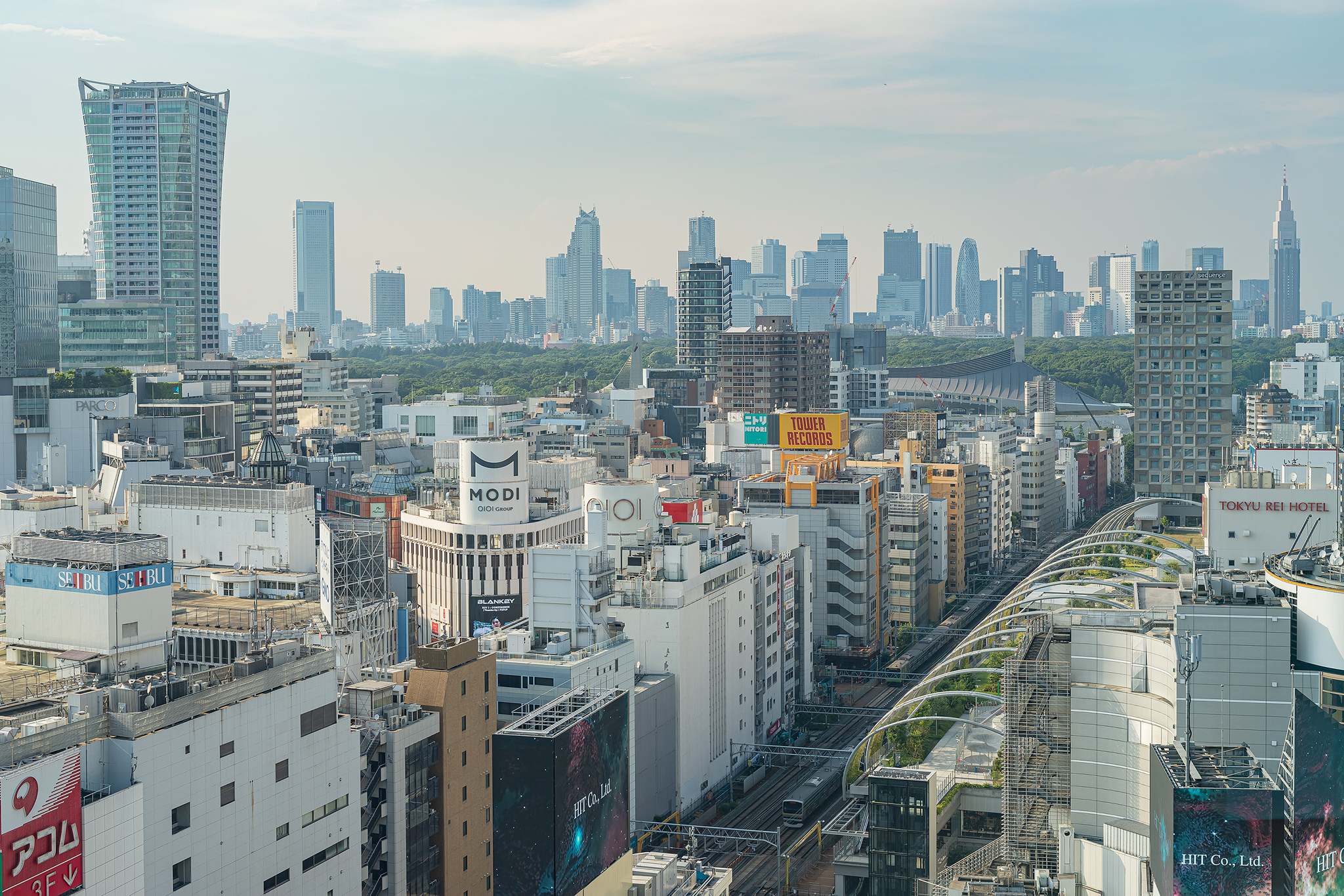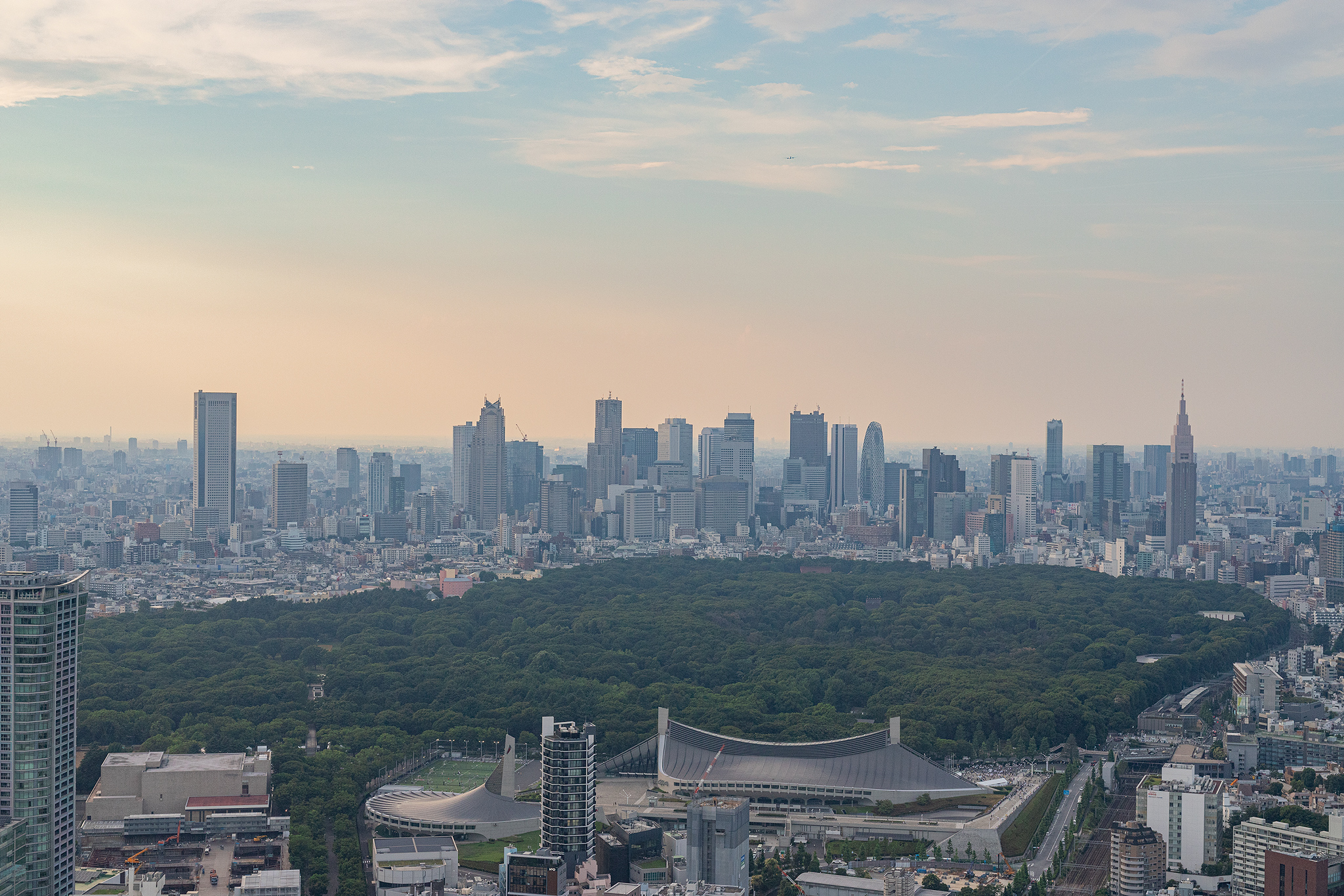 메이지진구와 신주쿠의 고층 빌딩 지역도 보입니다.