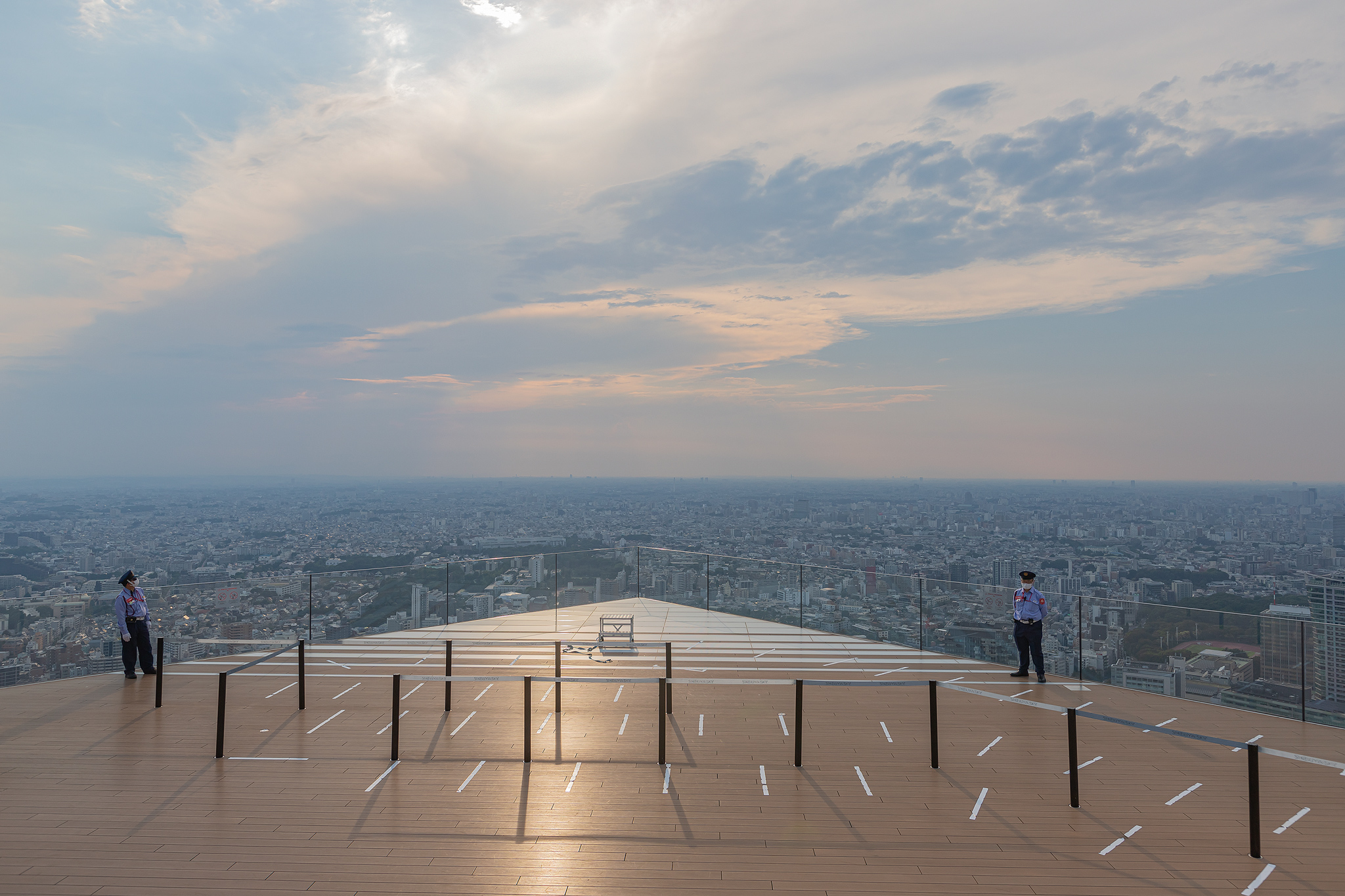 노을이 지기 시작하며 시부야 스카이에도 사람들이 늘어납니다.