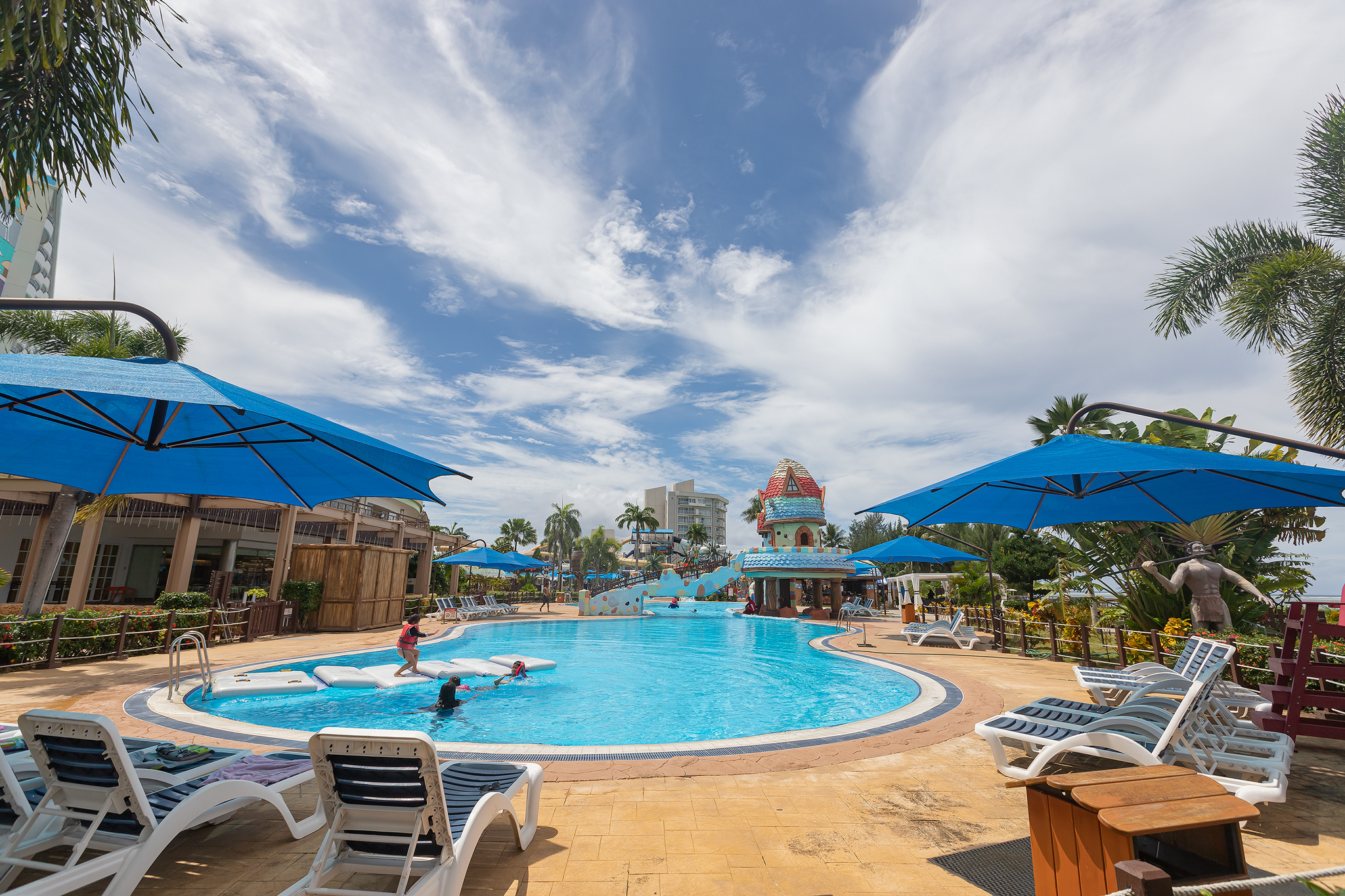 워터 파크 뒤로 보이는 사이판 월드 리조트