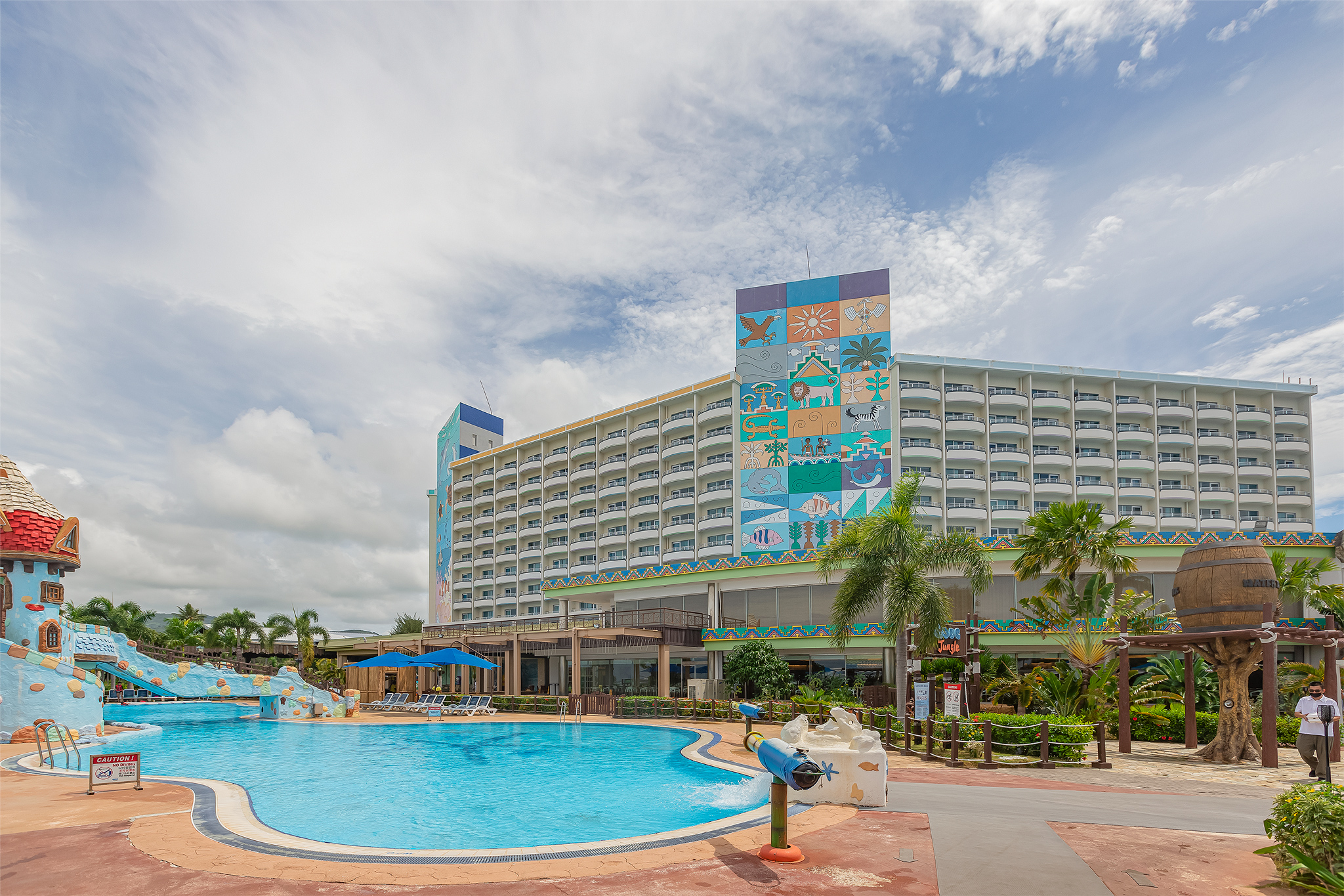 월드 리조트는 신상 호텔은 아니지만 2019년 전체 객실 리뉴얼로 깔끔한 시설에 전 객실 오션뷰의 리조트 입니다.