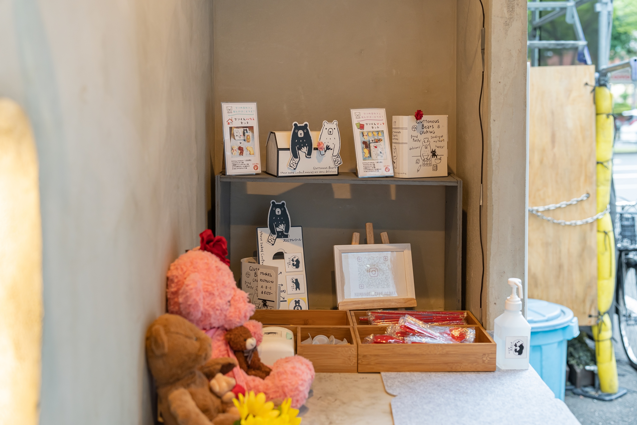 1. 귀여운 곰의 손(인형)이 메뉴를 고객에게 직접 건네주고, 손을 만질 수 있습니다. (코로나 대책을 고려하기 하였습니다.)