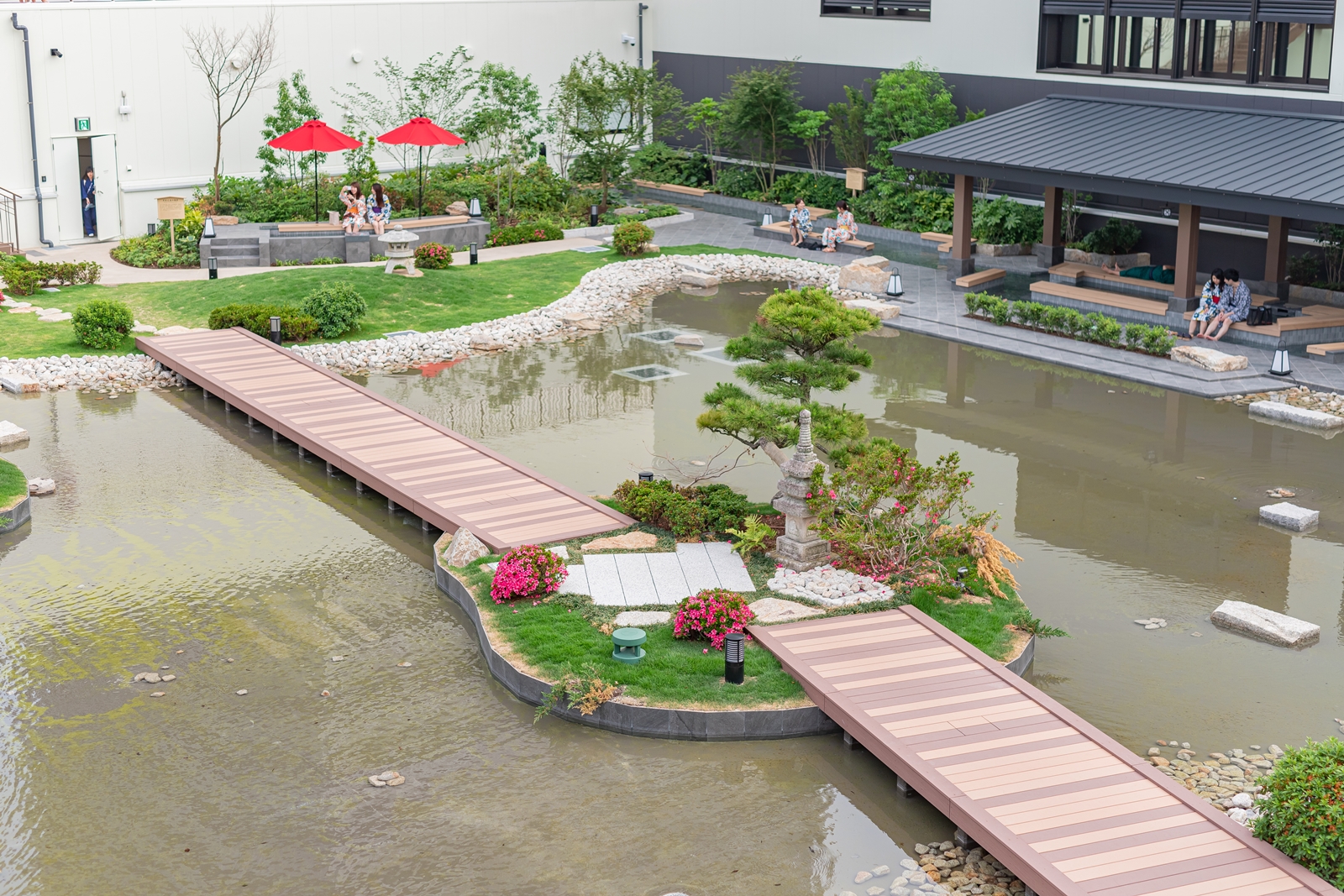 중앙에는 빨간 다리가 있어 기념사진을 찍기에 좋습니다.