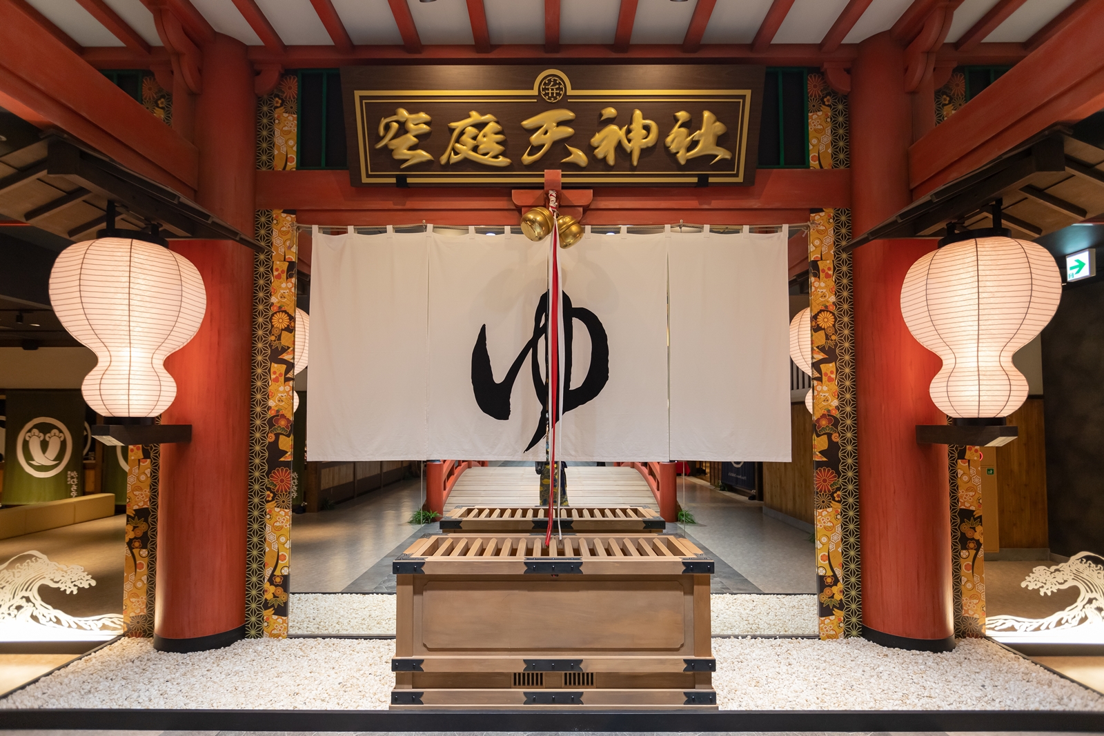 정면에 온천의 번영을 기원하는 소라니와텐신사(空庭天神社) 와 함께 곧게 뻗은 길이 있습니다.