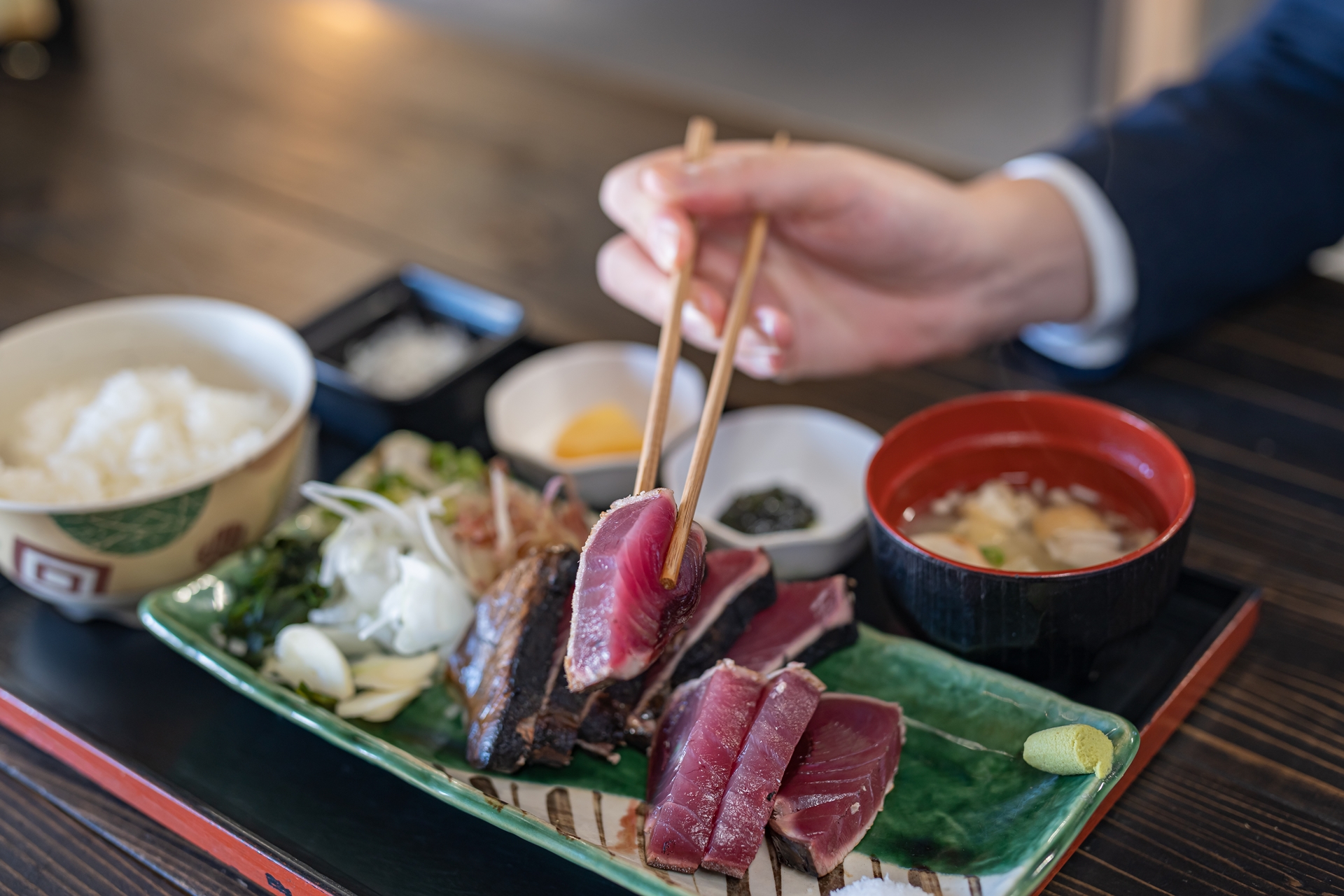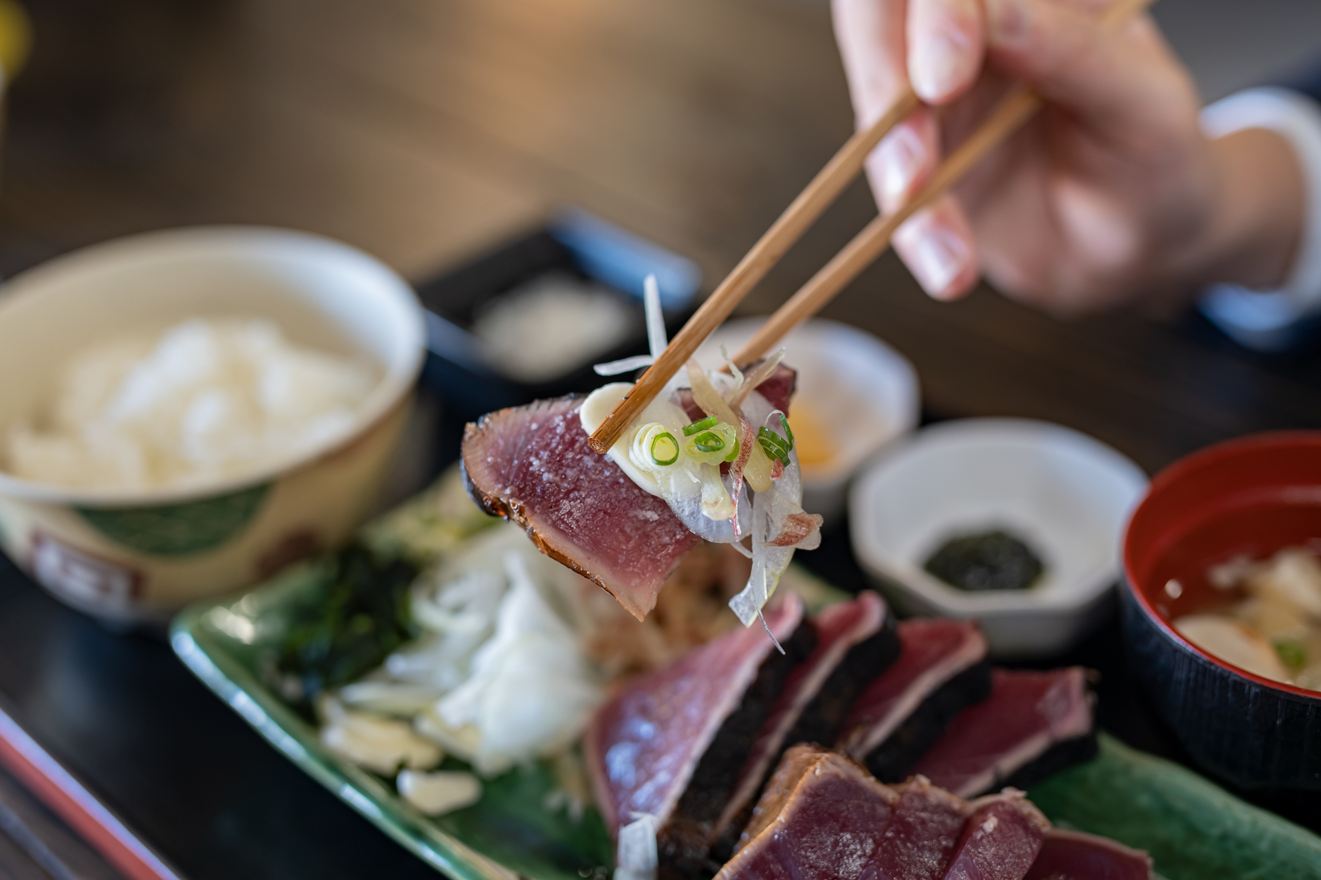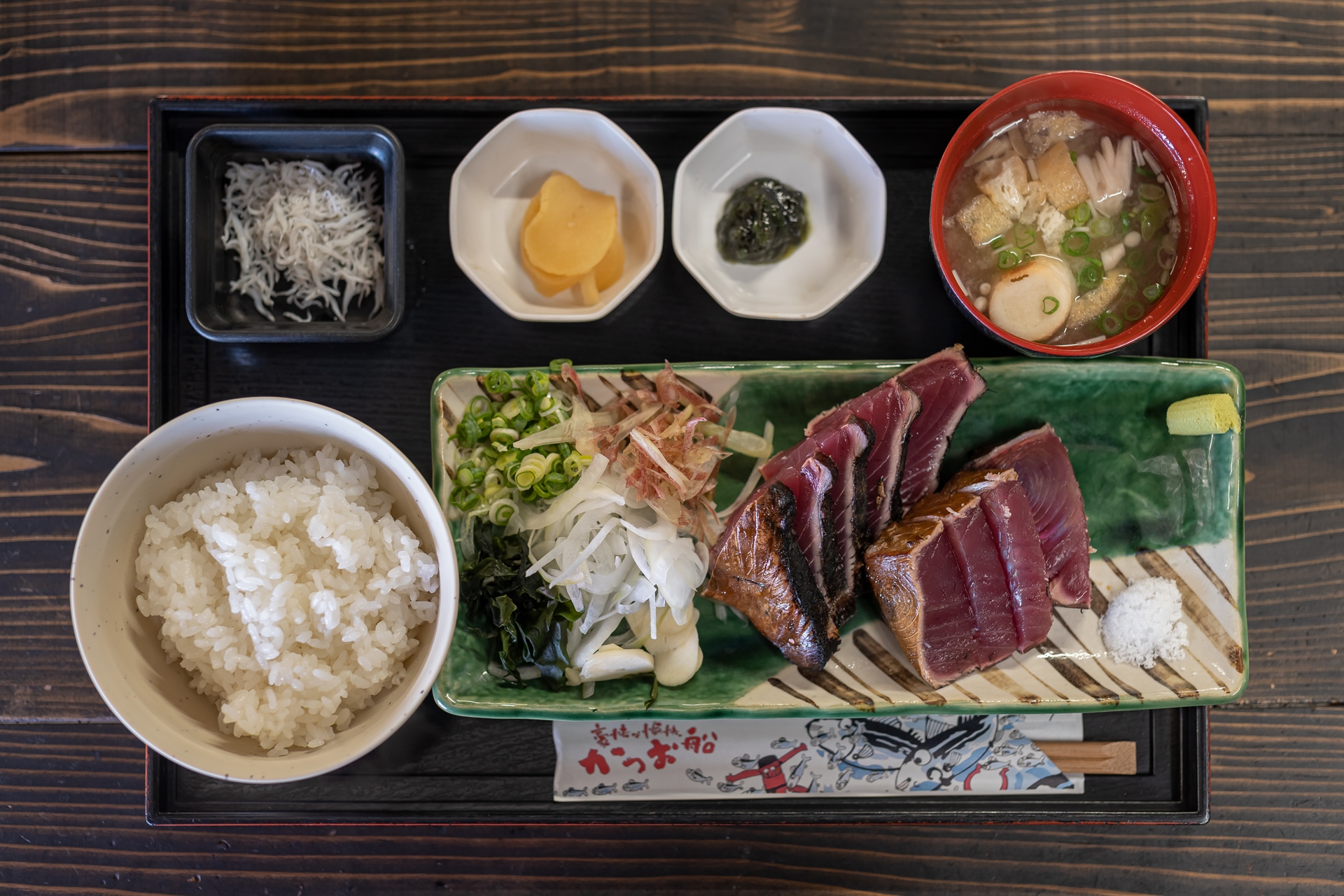 고치 현은 해산물을 사랑하는 일본에서도 가다랑어 소비가 가장 많은 지역입니다. 가다랑어 낚시 또한 중요한 전통이자 지역 경제의 한 축을 담당하고 있습니다. 가다랑어는 지금도 약 400년 동안 보존해온 전통 장대 낚시법인 잇폰즈리(채낚기) 방법을 사용해서 잡습니다. 어부들은 가다랑어 떼를 한 지역으로 유인한 뒤에 그물을 사용하는 대신에 장대로 하나씩 낚아채 잡습니다. 가다랑어는 마리 당 5킬로그램가량 나가기 때문에 이 방법은 노동력이 많이 필요하지만, 가다랑어에 손상이 덜 가고 우연히 다른 물고기를 잡을 가능성도 낮습니다. 가다랑어는 일년 내내 먹을 수 있지만, 초여름과 늦가을에 가장 맛있다고 합니다.