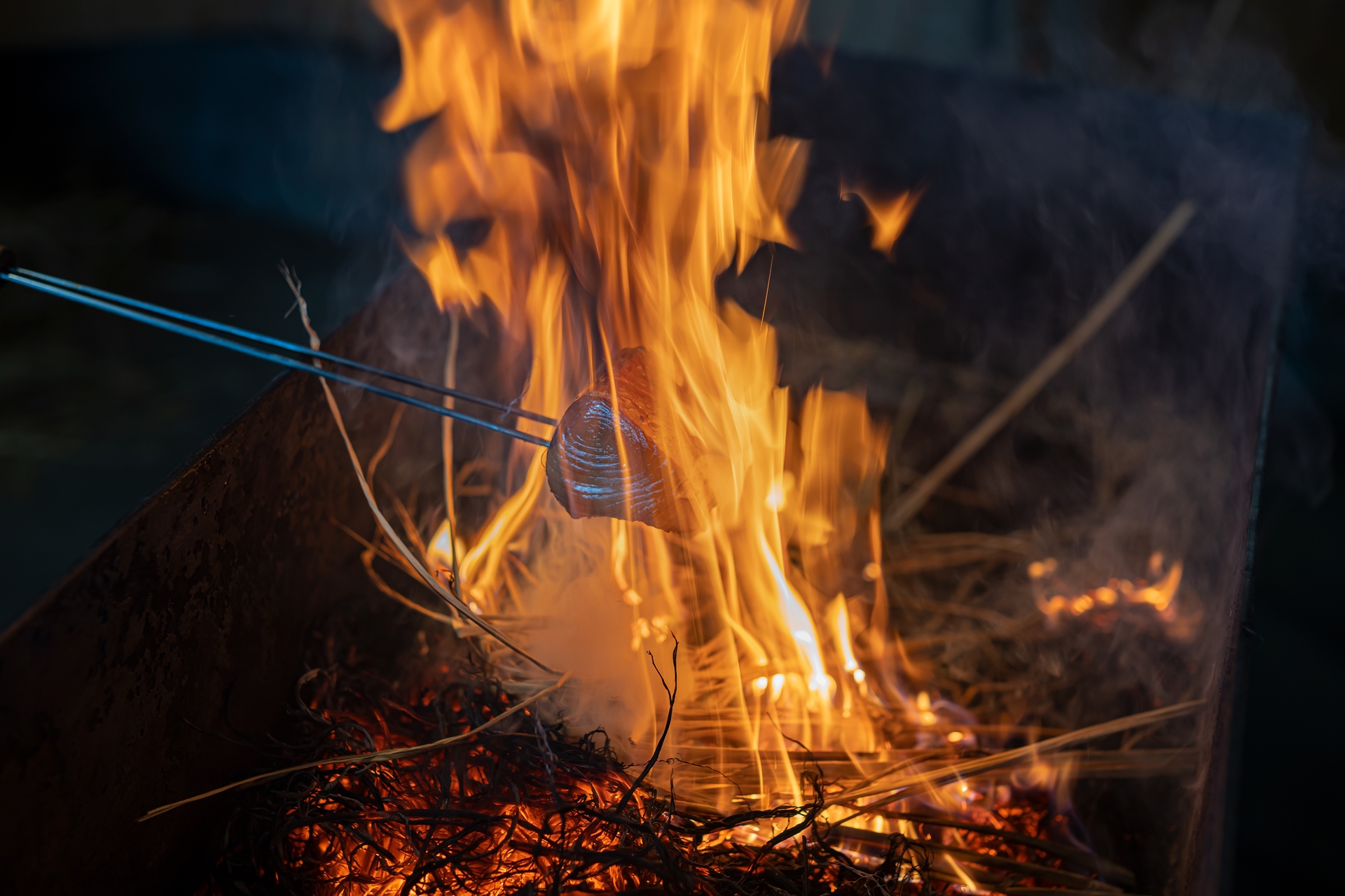 짚불의 뜨거운 열기로 가다랑어가 맛있게 익어갑니다.
