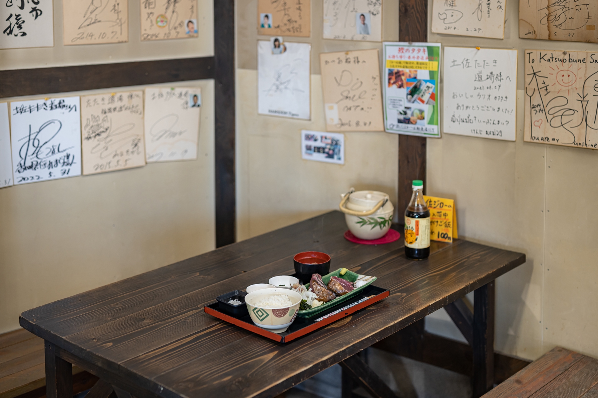 가쓰오는 일식에서 제일 많이 사용하는 요리 재료 중 하나입니다. 주로 말린 뒤 국물을 우릴 때나 토핑으로 사용하는 경우가 많은데, 이곳 가쓰오 부네 도사 다타키에서는 태평양에서 가장 신선한 가쓰오를 사용하기 때문에 하루 공급량에 제한이 있으며, 매진 시 서비스는 중단됩니다. 도사 다타키 도장은 여러 레스토랑들과 함께 가쓰오부네 단지 내에 있으며, 단지 내에는 현지 직송으로 들어오는 지역의 먹거리로 가득 찬 식료품점이 있어 선물을 구입하기에도 아주 좋습니다.