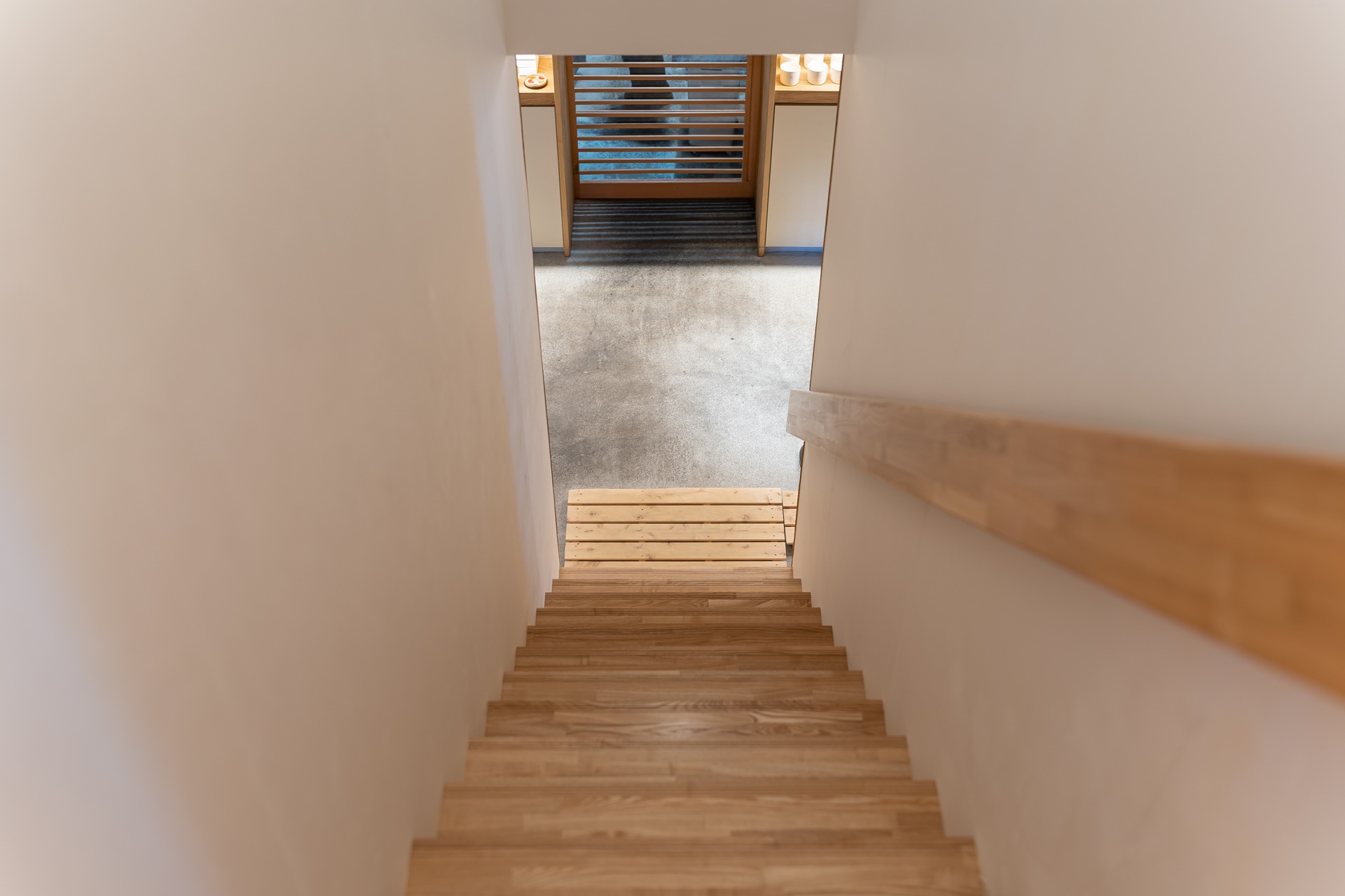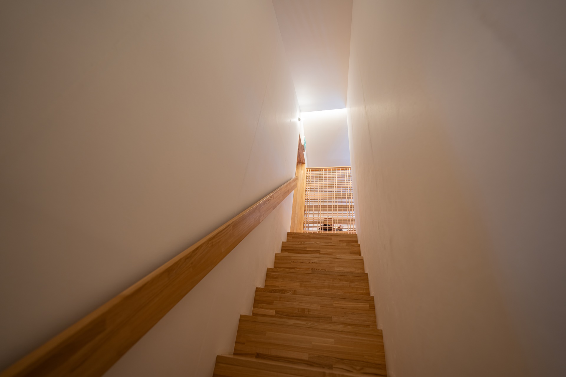 촉감 좋은 나무 계단을 한 계단씩 밟아 올라가면