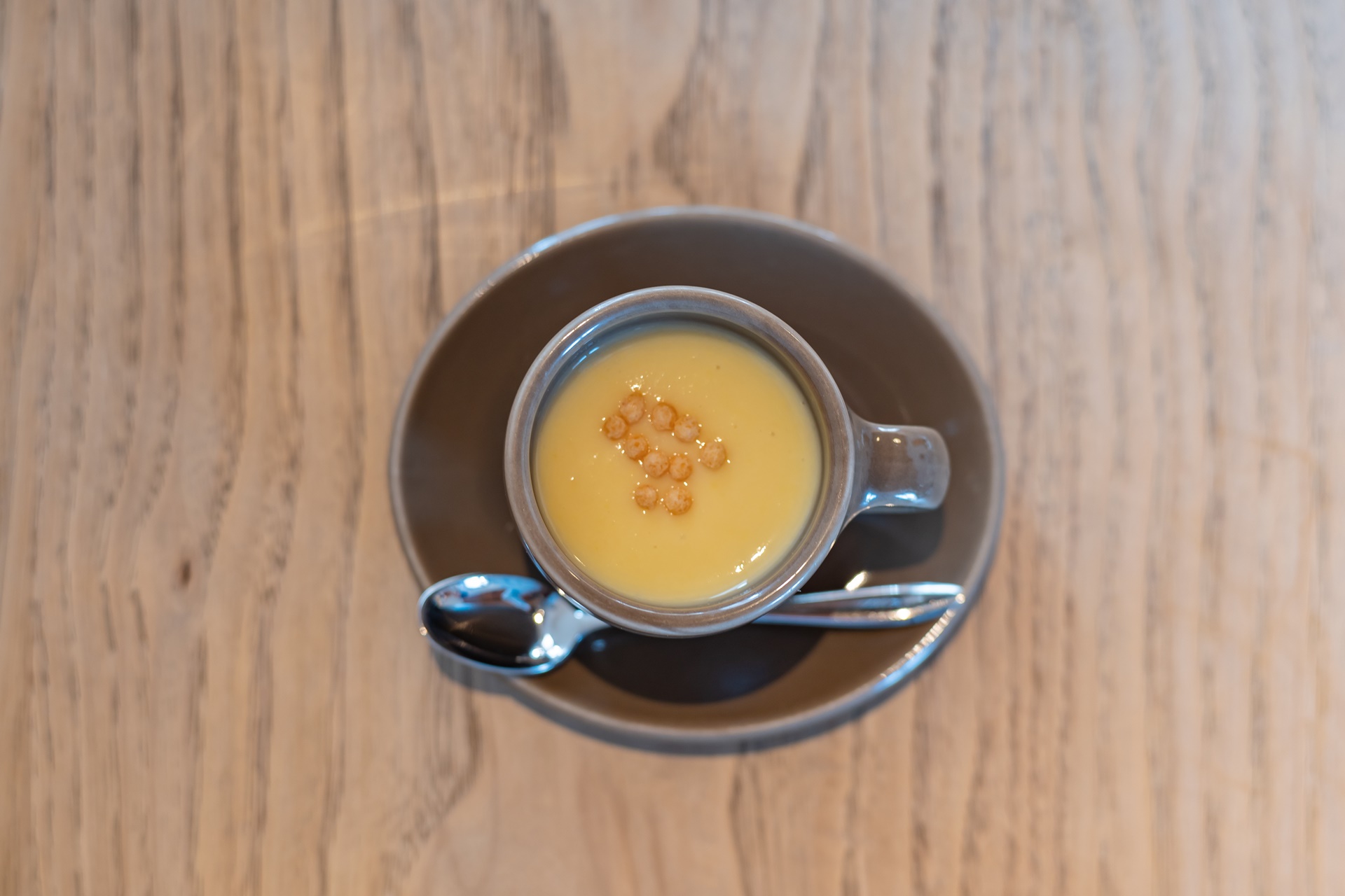 따뜻한 콘 버터 스프도 함께 받았습니다.