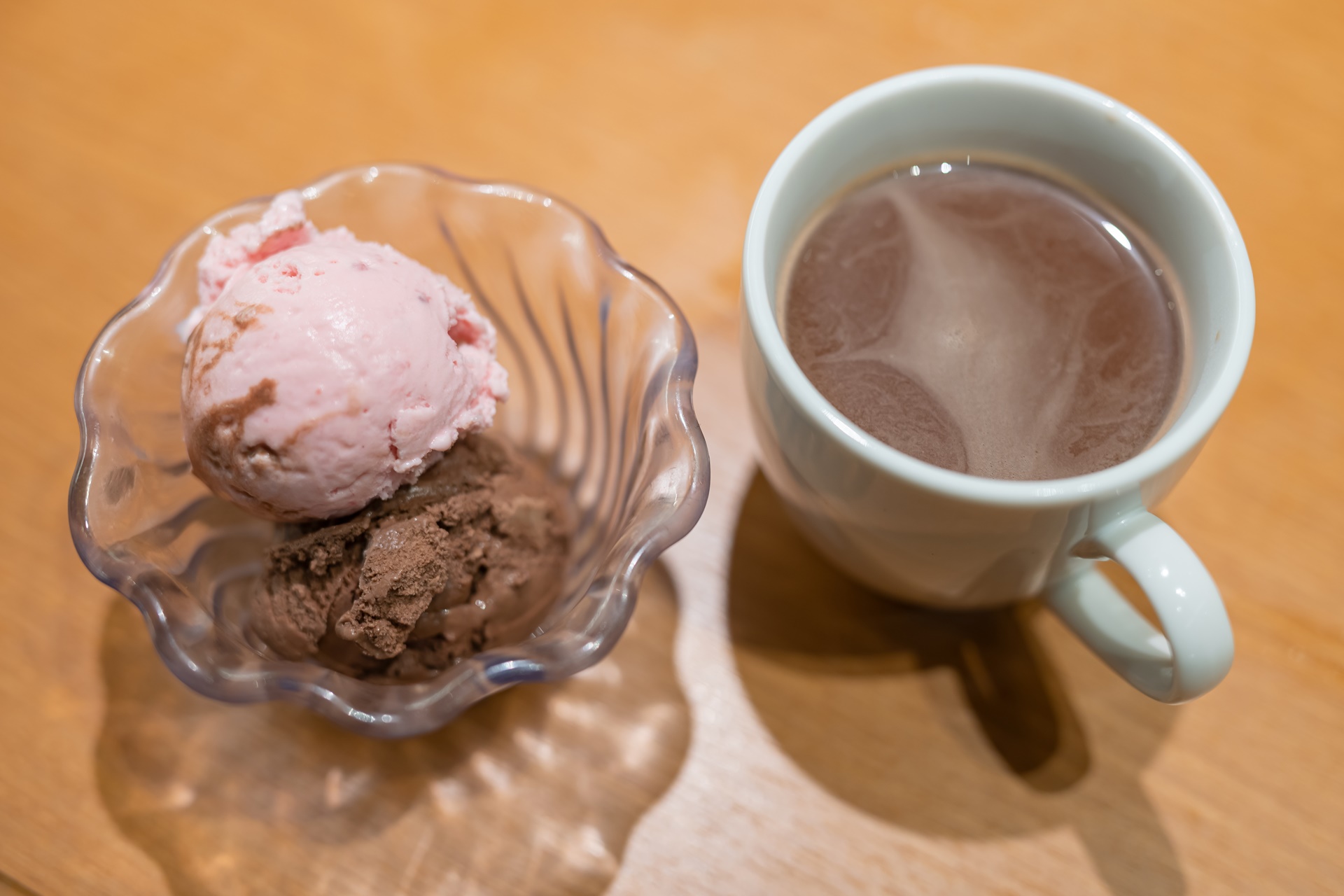 후식으로 아이스크림과 따뜻한 초코를 먹었는데 늘 먹던 고기 뷔페의 아이스크림이 아니었습니다.