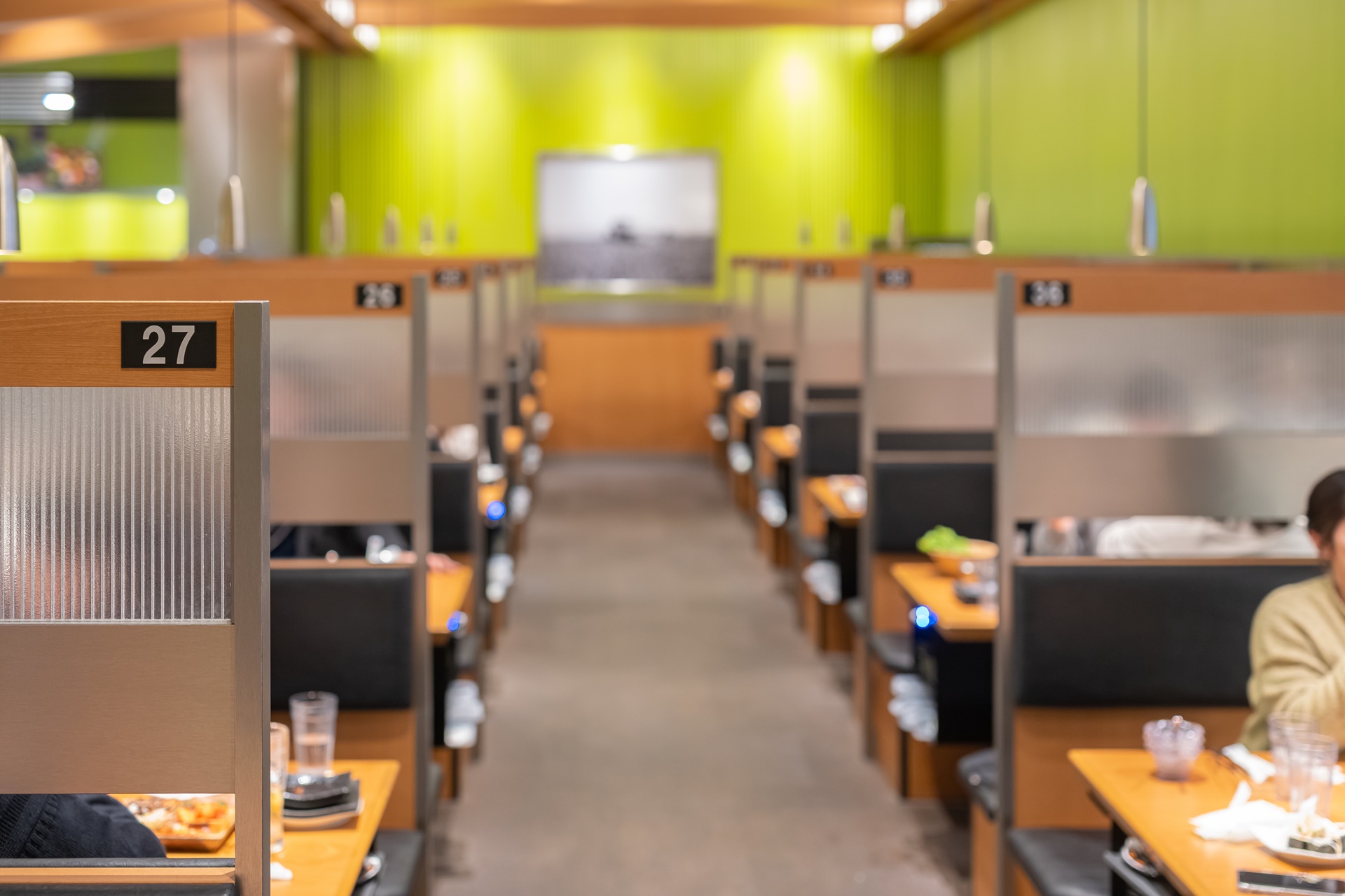 고기에 집중 할 수 있도록 독서실 같은 테이블로 칸이 나뉘어 있었고 주로 2인 자리와 4인 자리로 나뉘어 있었습니다.