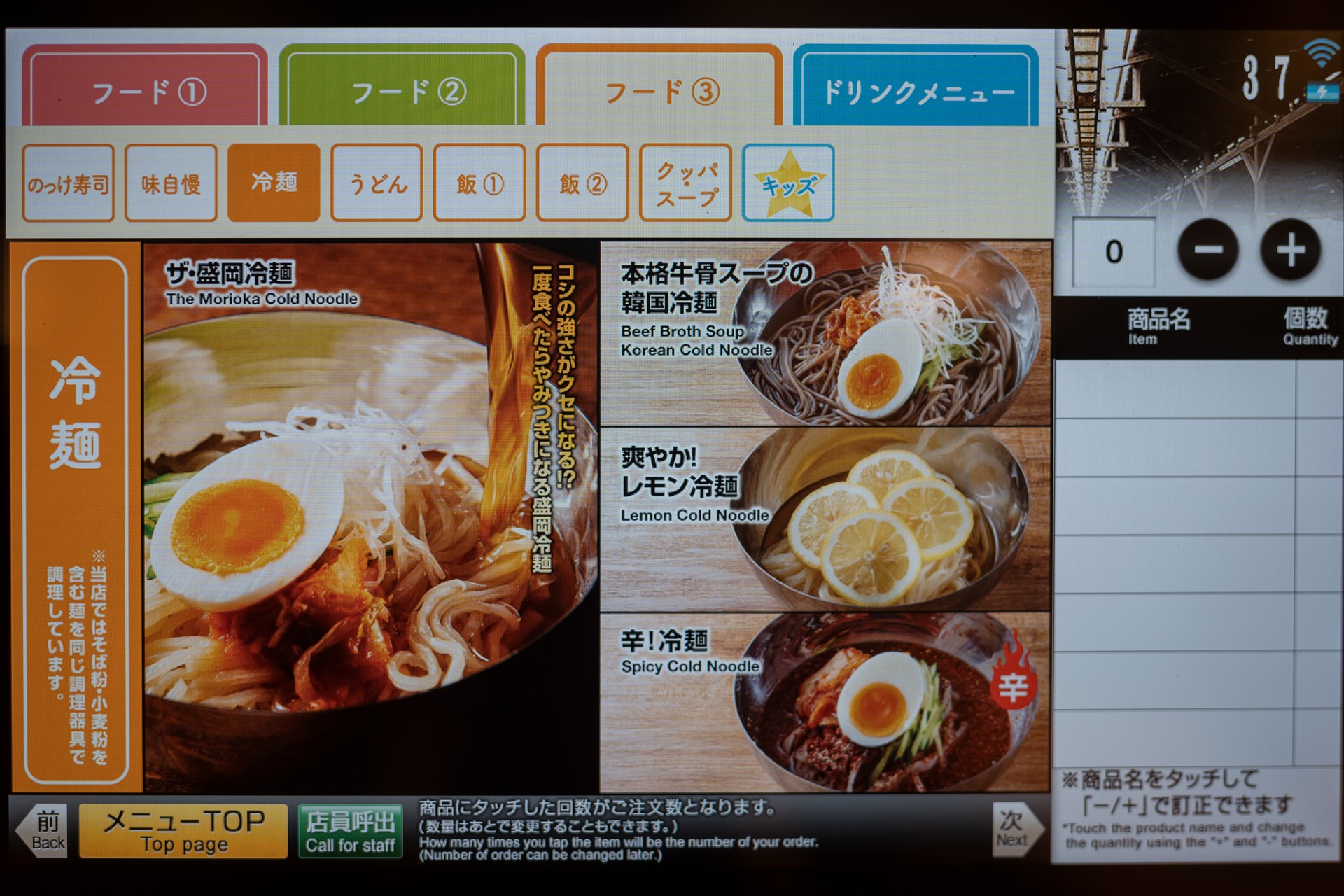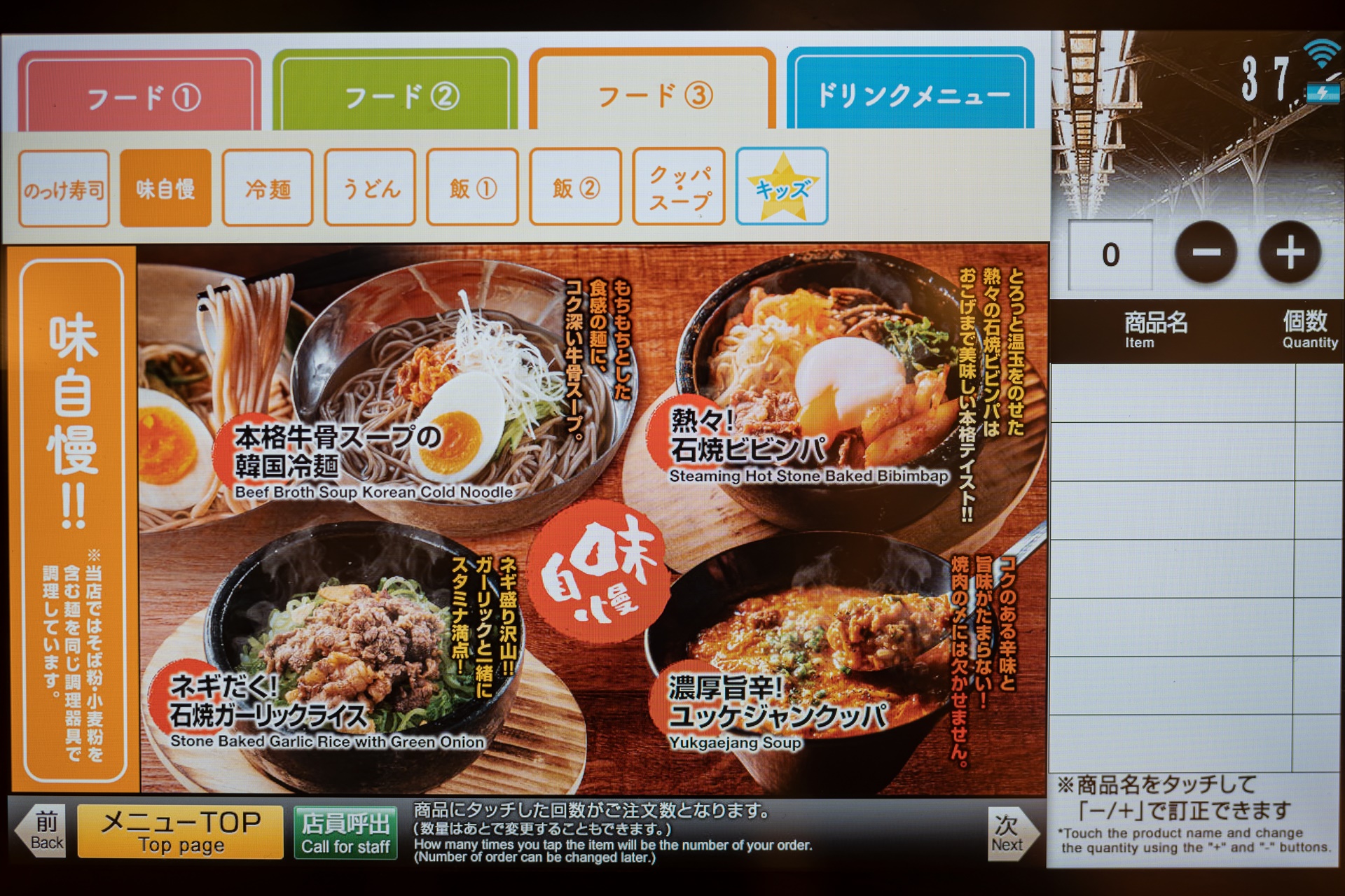 요 메뉴에는 점원 호출, 젓가락 교환, 아이용 식기 주문, 와사비, 마요네즈 추가 등의 메뉴가 있었고