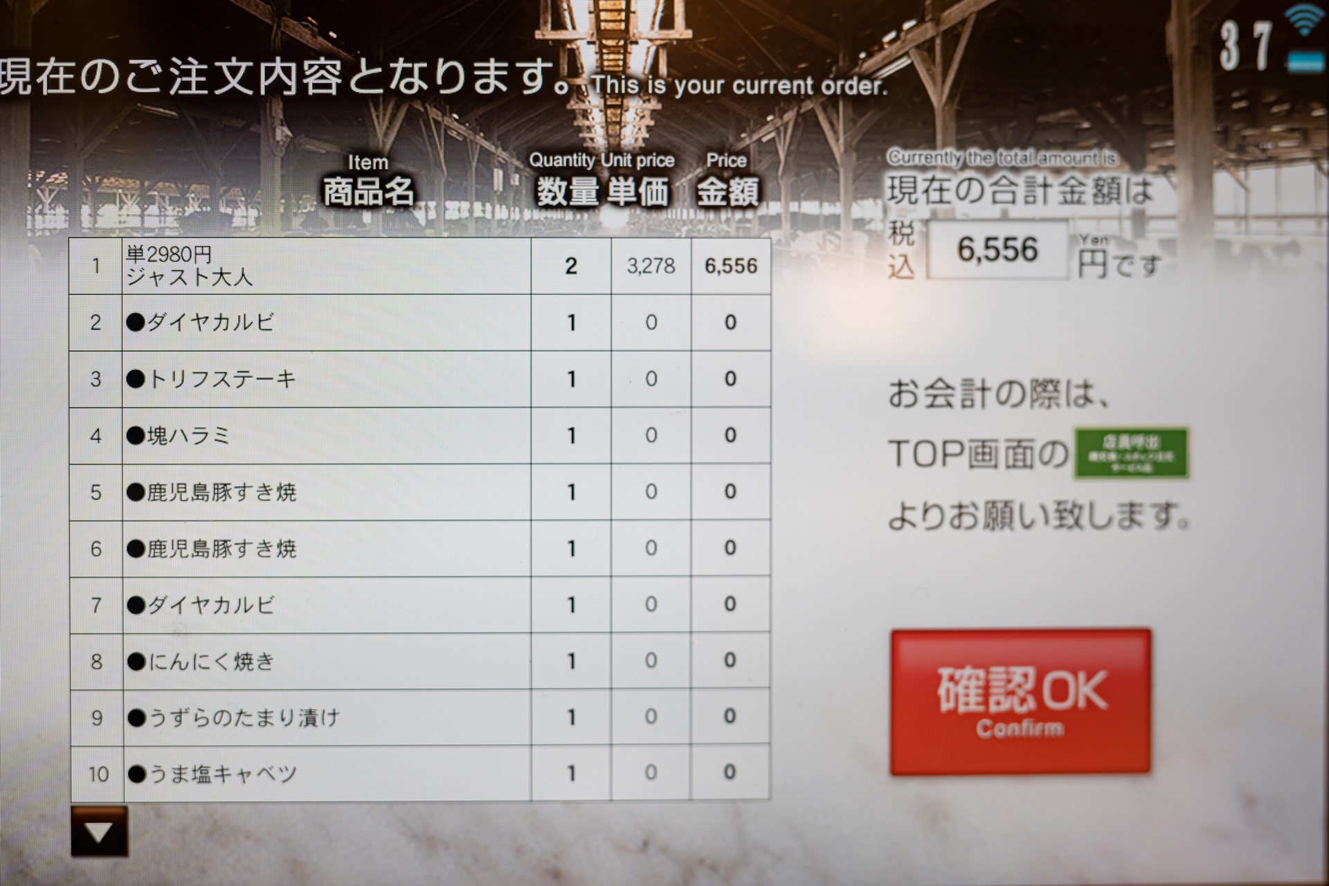 2명이 6,556엔 인당 3만원 정도 나와서 배터지게 먹었습니다.(너무 많이 먹어 이날 저녁을 못먹었습니다.)