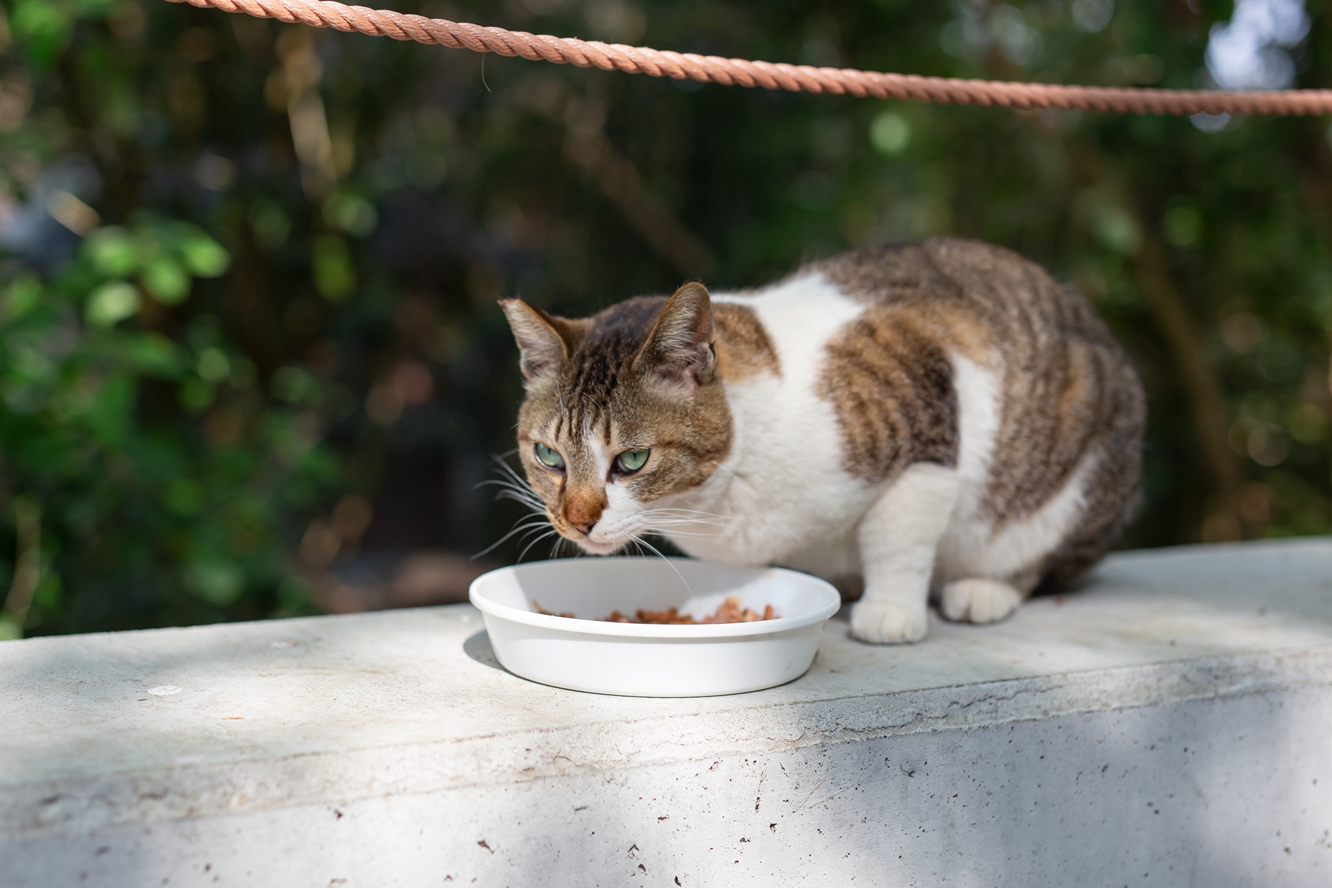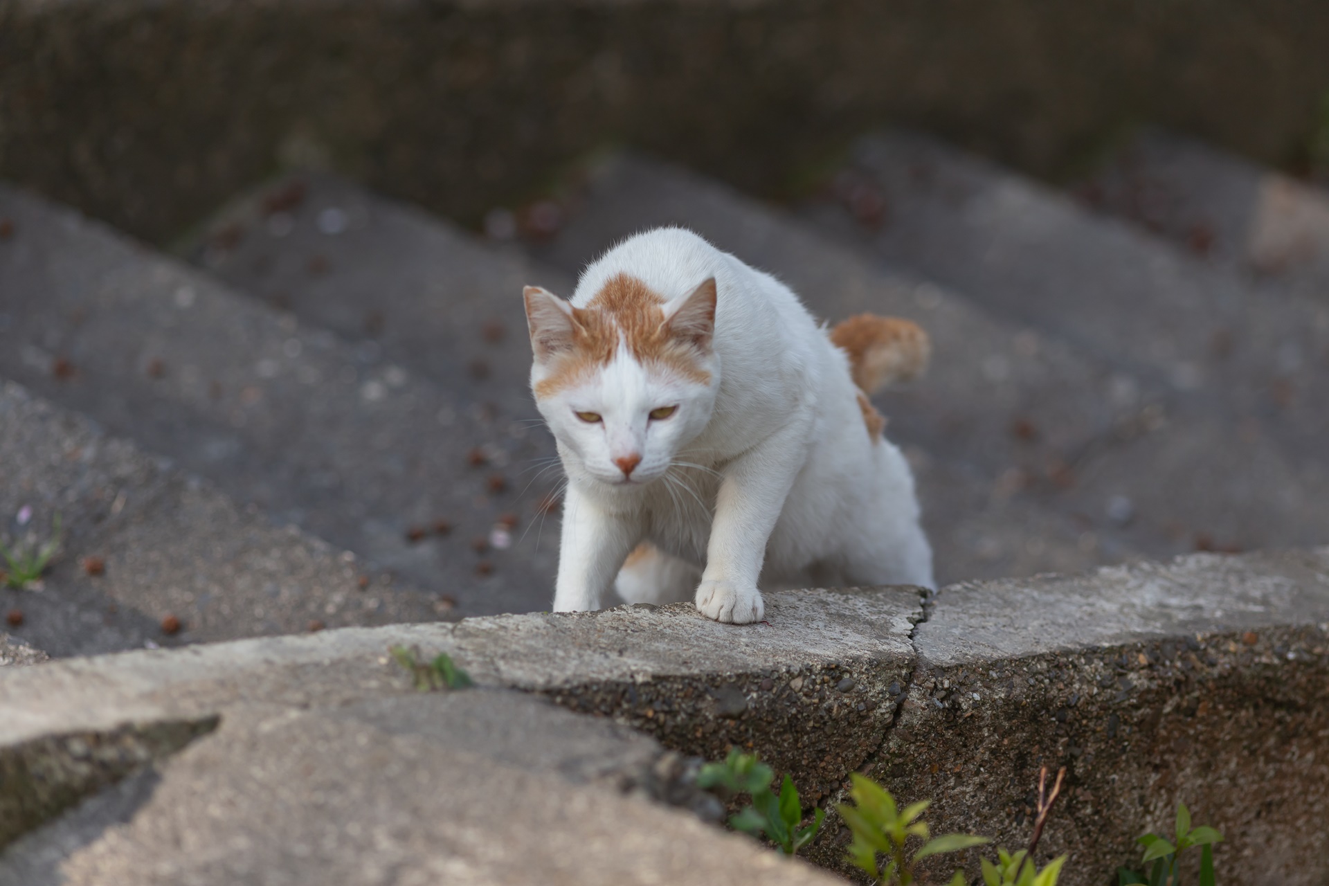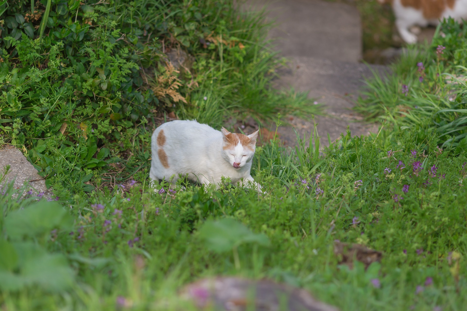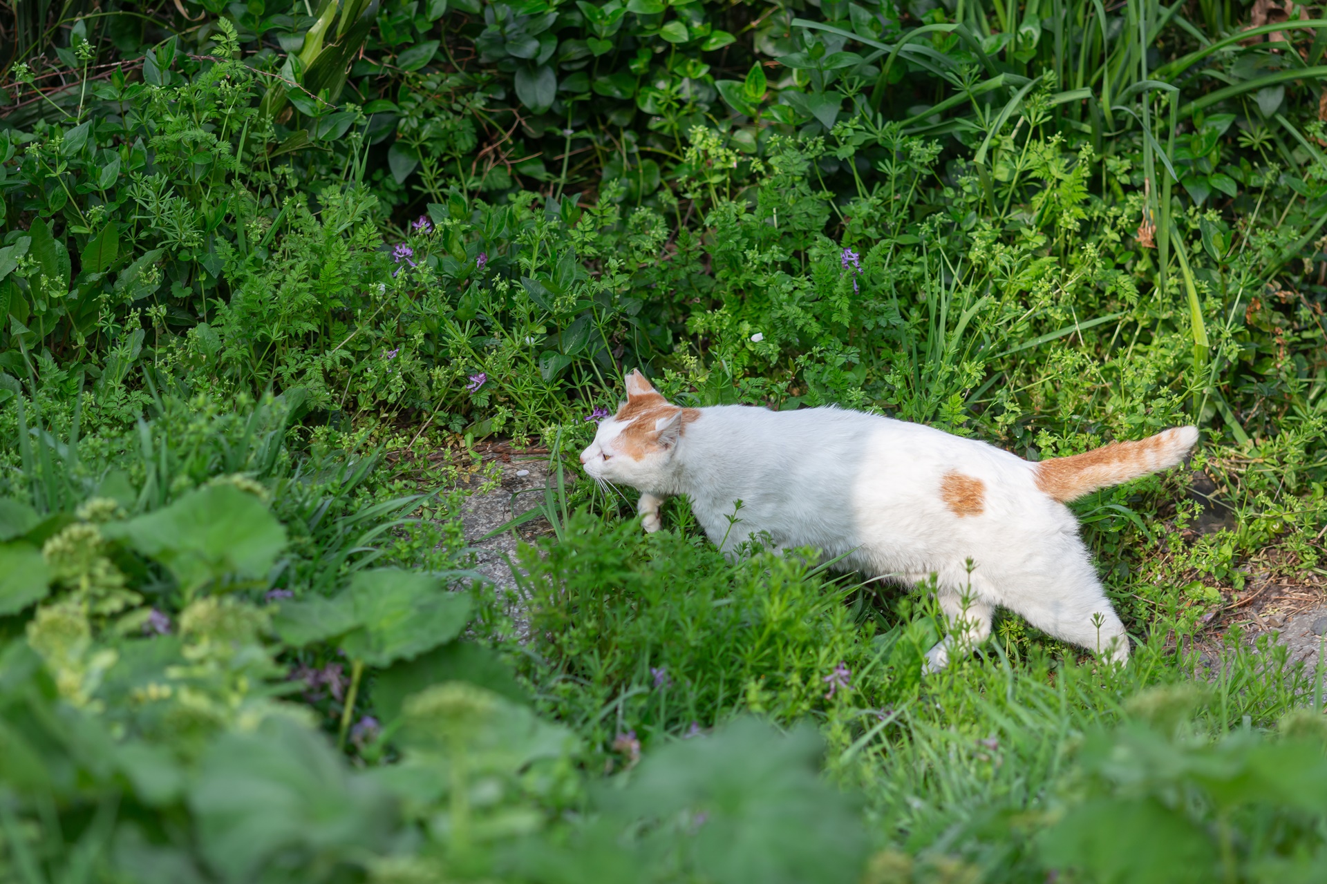 하얀 고양이는 풀을 뜯어 먹다가 철학의 길로 걸어옵니다.