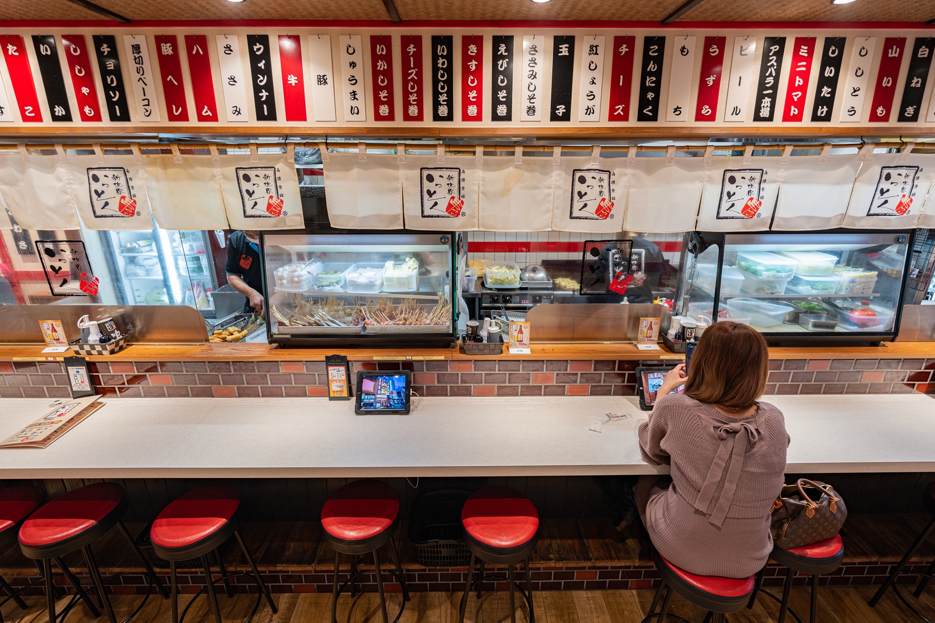 카운터 자리에는 혼자 온 분들이 많았고 가볍게 맥주 한 잔과 쿠시카츠를 즐기고 있었습니다.