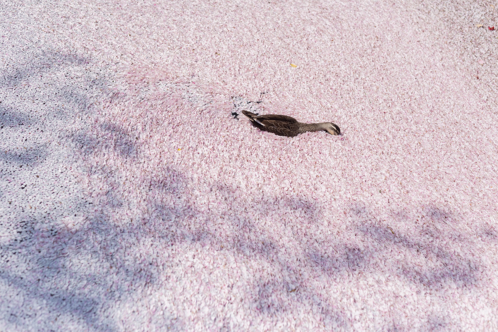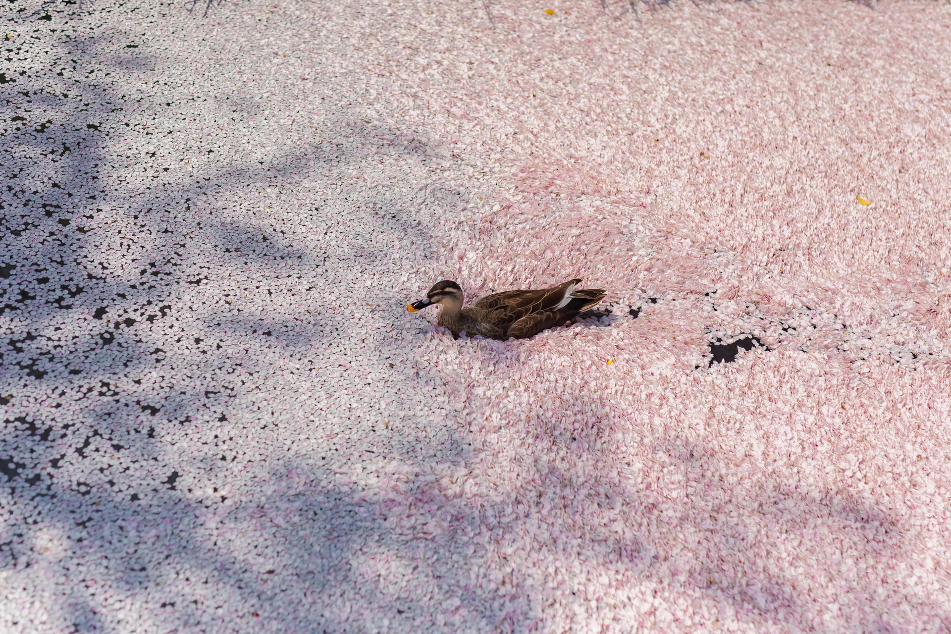 오리도 신이나서 벚꽃 수로에서 수영을 합니다.