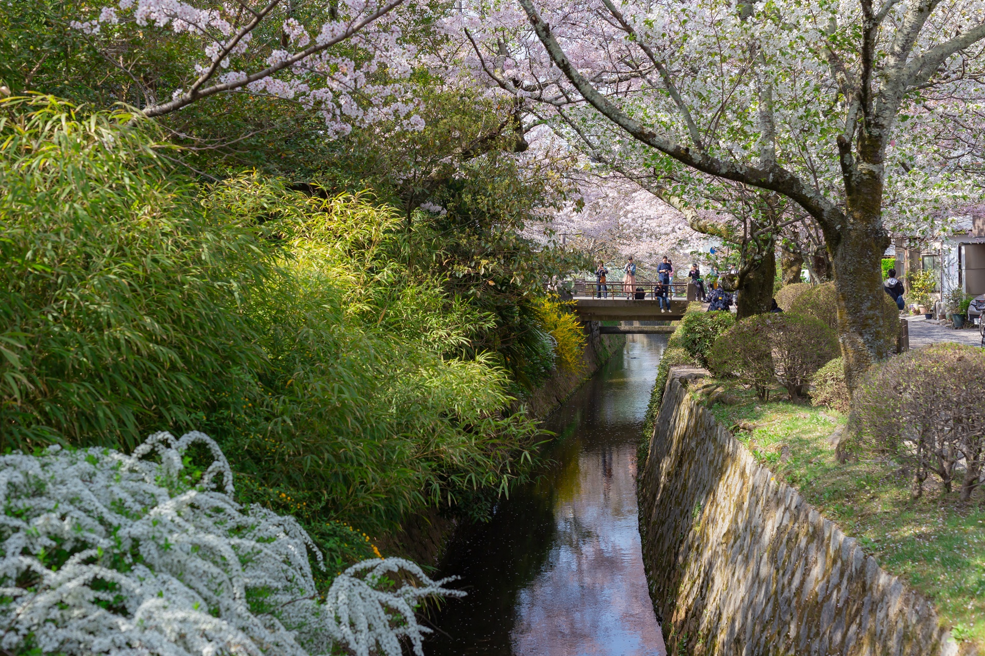 철학의 길의 수로인 시라카와 소수(白川疏水)는 철학의 길에서 시작 교토 북부까지 이어지는 수로로 곳곳에 다리가 놓여 있어 다리 근처에서 사진을 찍는 사람들이 많습니다.