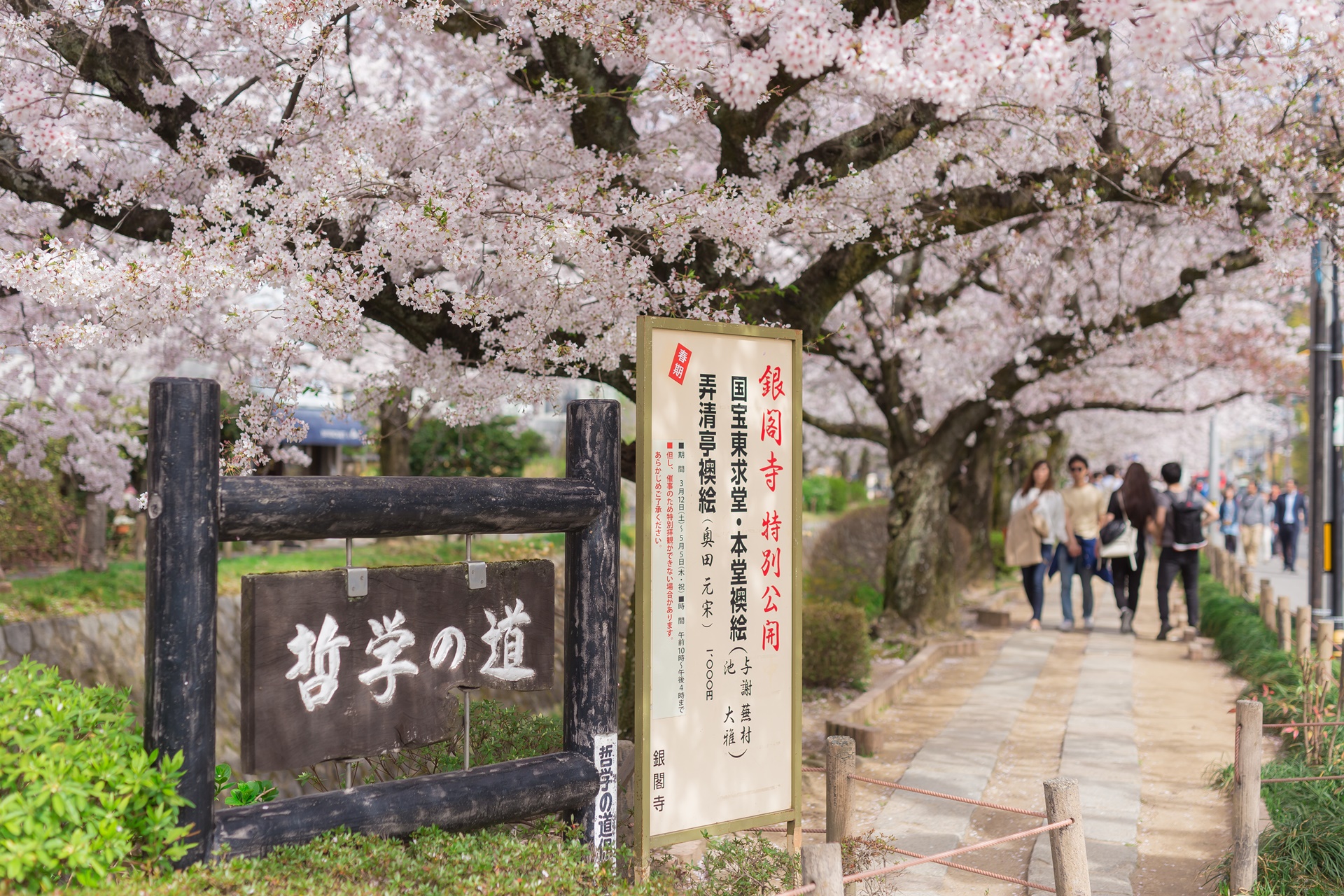 철학의 길은 비와호 수로를 따라 약 1.5km의 오솔길이 계속됩니다. 수로에는 벚꽃 잎이 가득하며 일본의 길 100선에 꼽히는 산책로로 선정되었습니다. 풍경이 아름다워 많은 사람들이 이 길을 찾게 되며 벚꽃 시즌 철학의 길을 걸으며 보이는 풍경은 마치 한 폭의 그림과 같습니다.