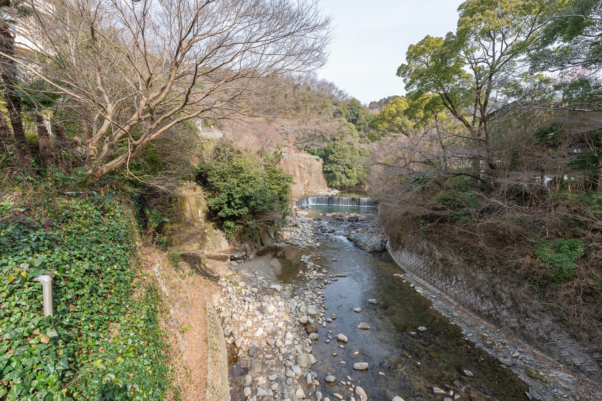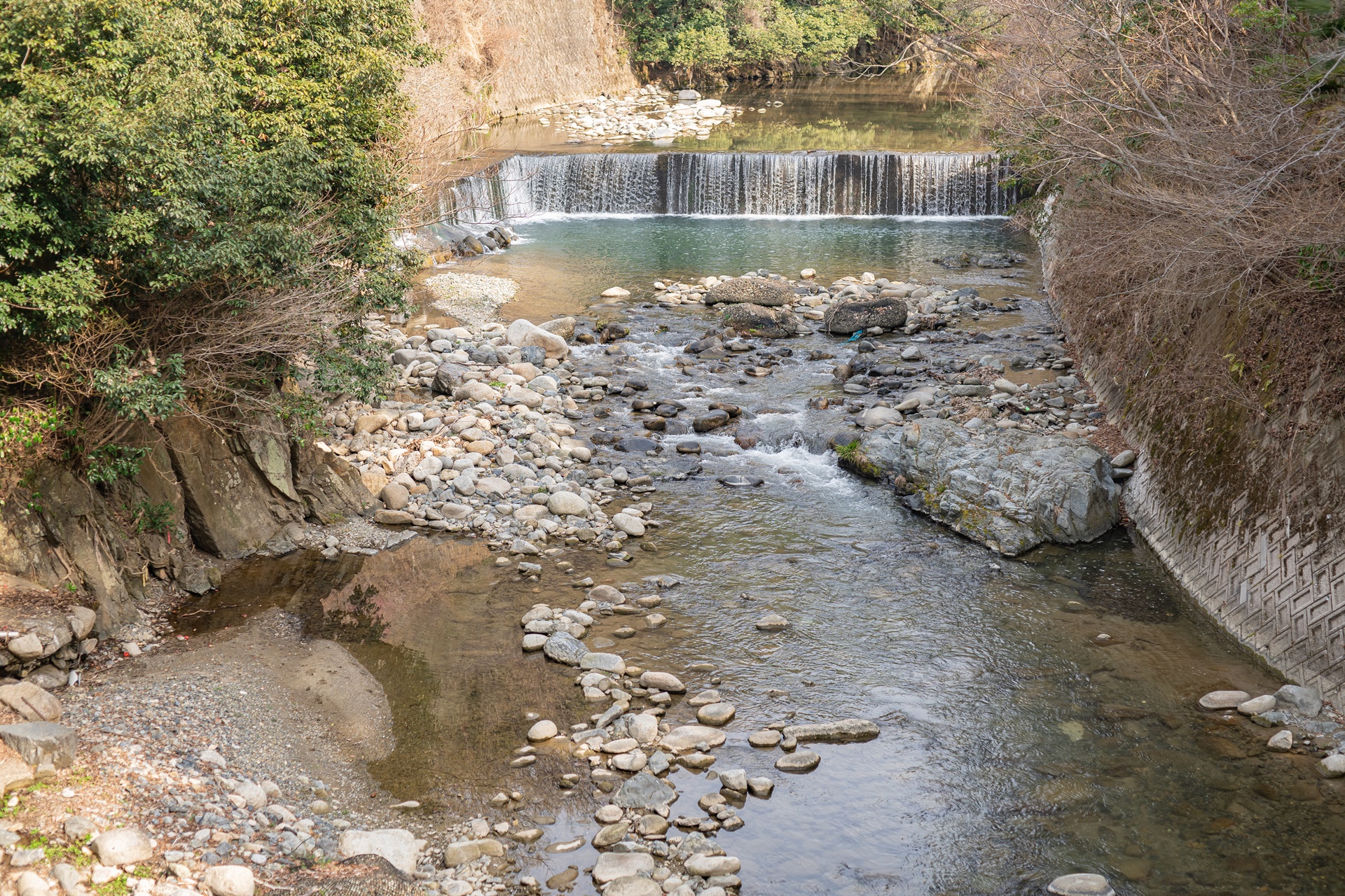 요노가와 강에는 작은 폭포가 있으며 물 소리를 들으며 여유롭게 시간을 보내기 좋습니다.