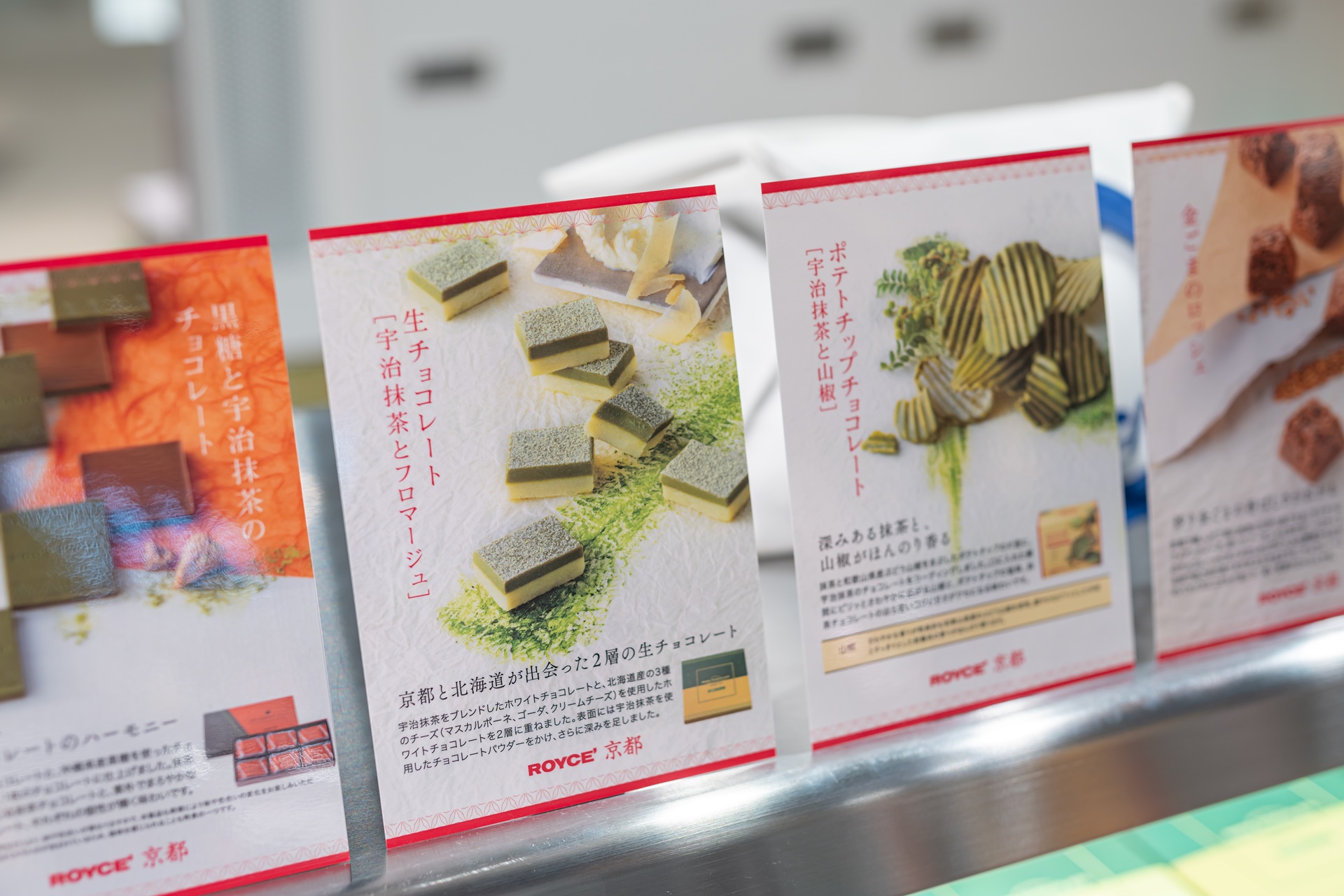 로이즈 하면 나마(생) 초콜릿이 인기이며 교토 한정 생 초콜릿은 말차맛과 홋카이도의 치즈 3종류가 들어간 두겹의 생 초콜릿 입니다.