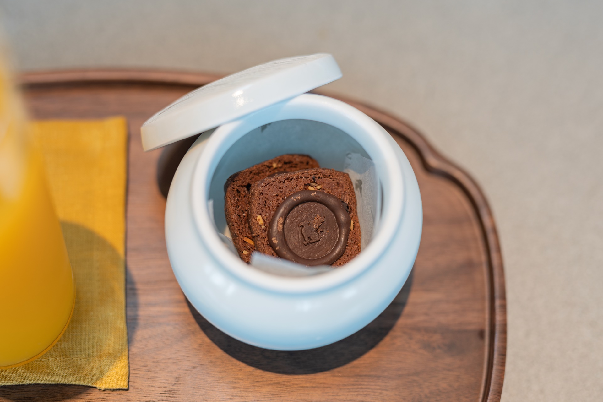 고소한 JW 메리어트의 초코 쿠키가 귀여운 항아리 모양 그릇에 담겨 나옵니다.