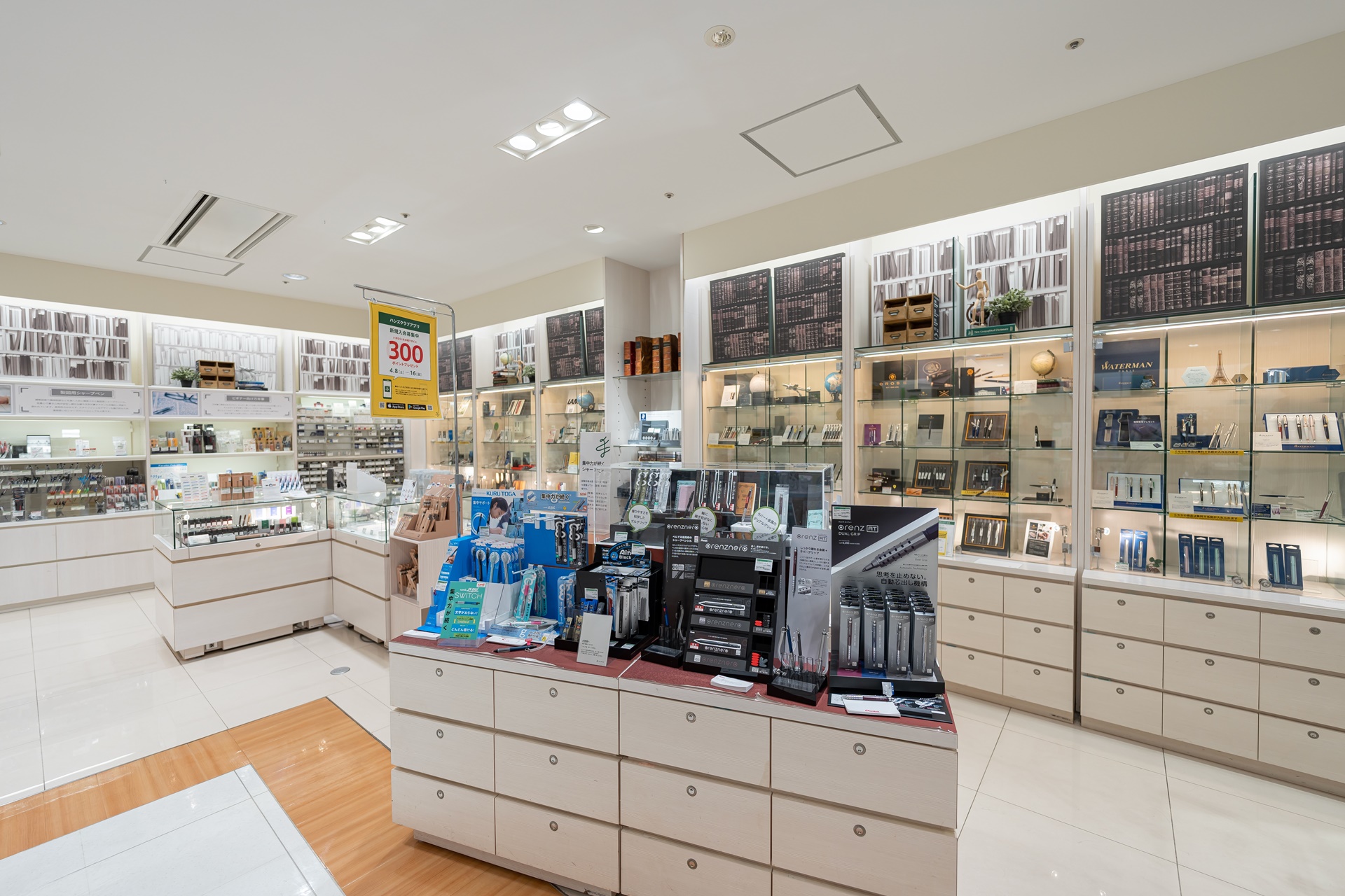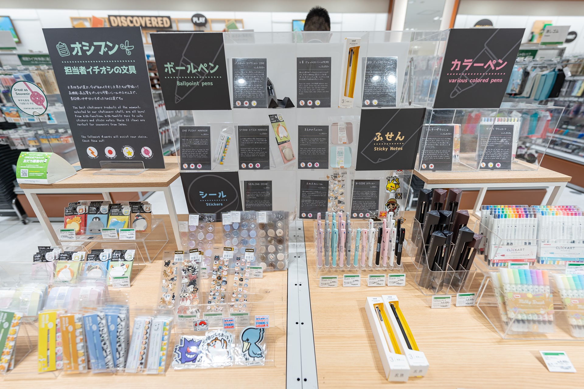 다른 층에는 다양한 문구류가 진열되어 있었습니다.