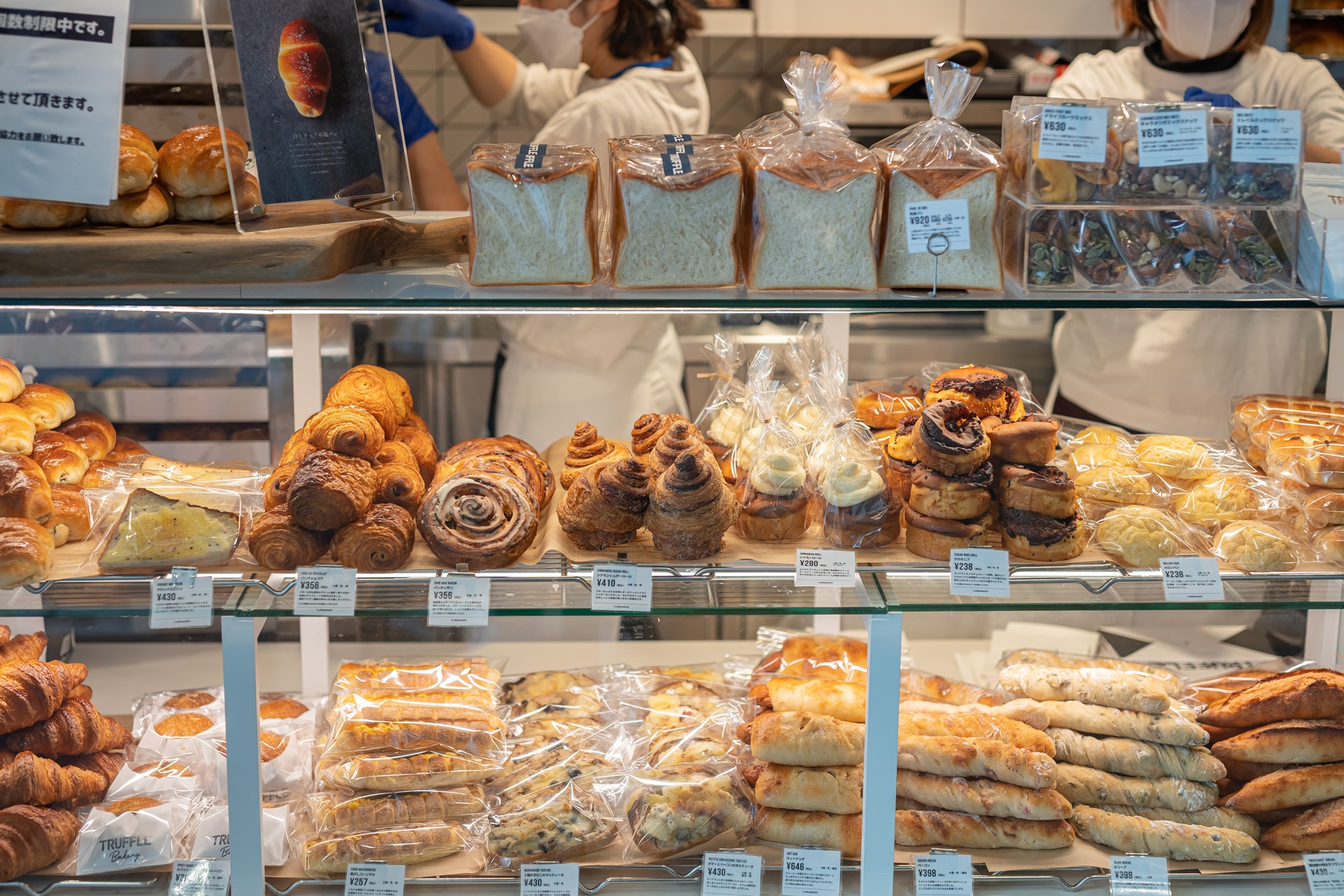 유라쿠초 매장에서는 생지를 받아 빵을 직접 구워내어 진열하고 있었습니다.