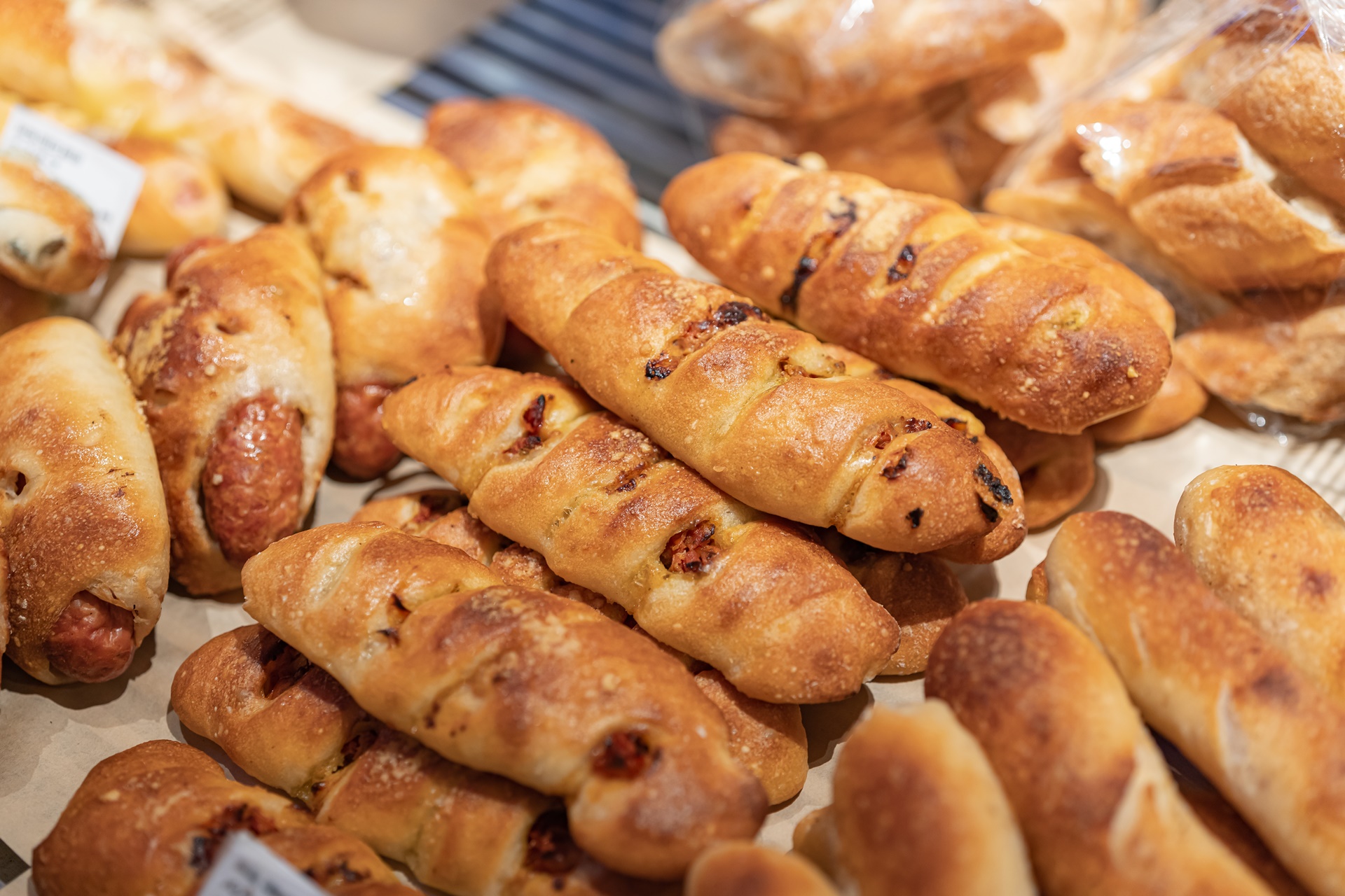쫄깃할 것 같은 빵들이 이쁘게 진열되어 있습니다.