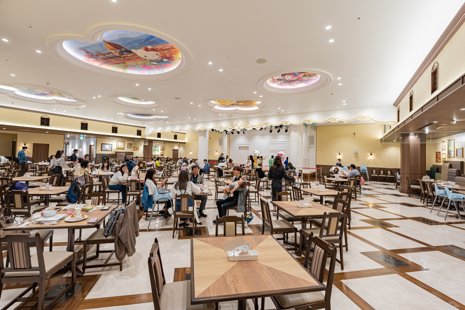 뷔페의 좋은 점 중 하나로 중앙에 무대가 있어 디너쇼 같이 캐릭터들이 이곳을 찾습니다.