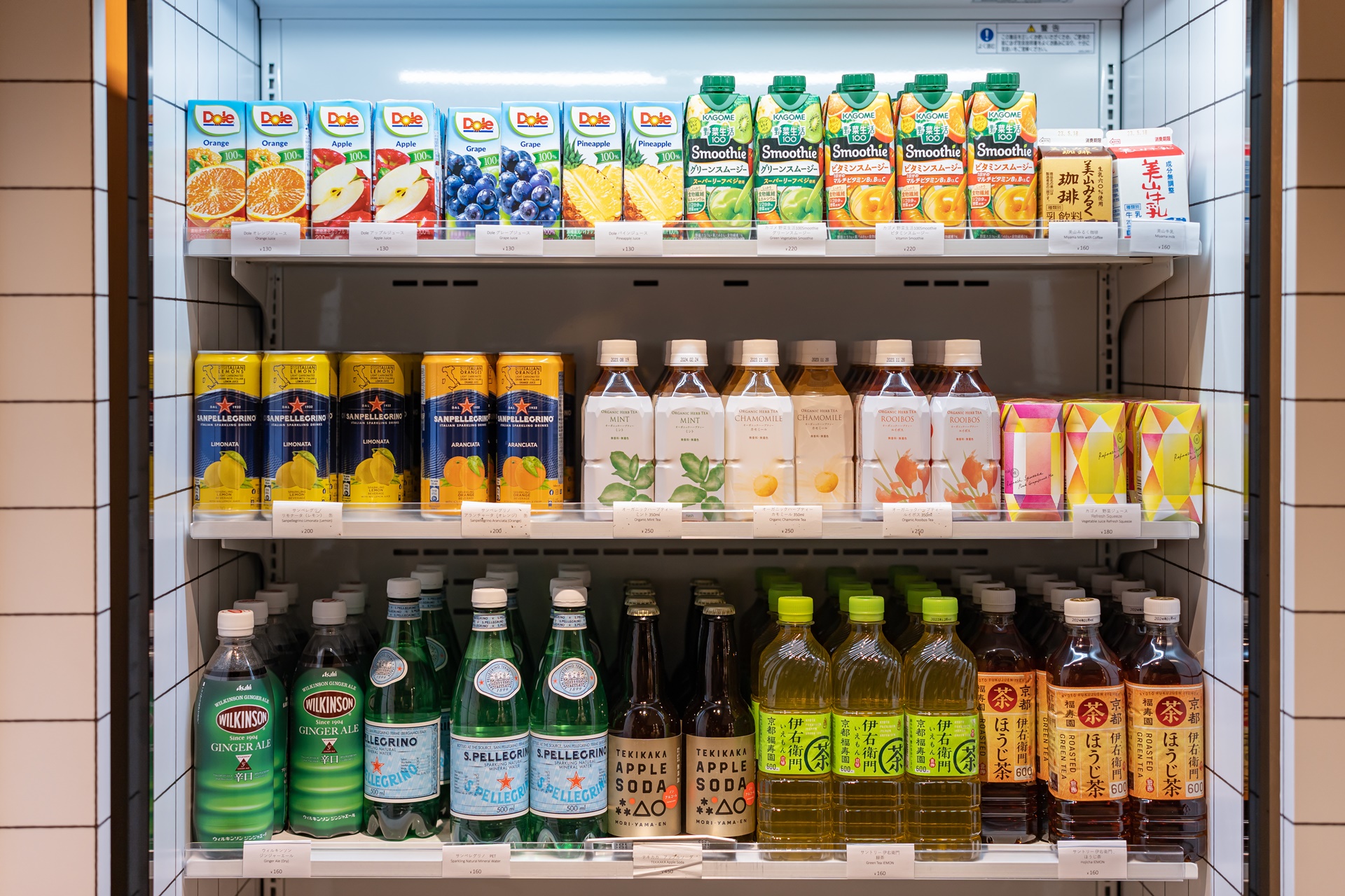 냉장고에는 다양한 음료가