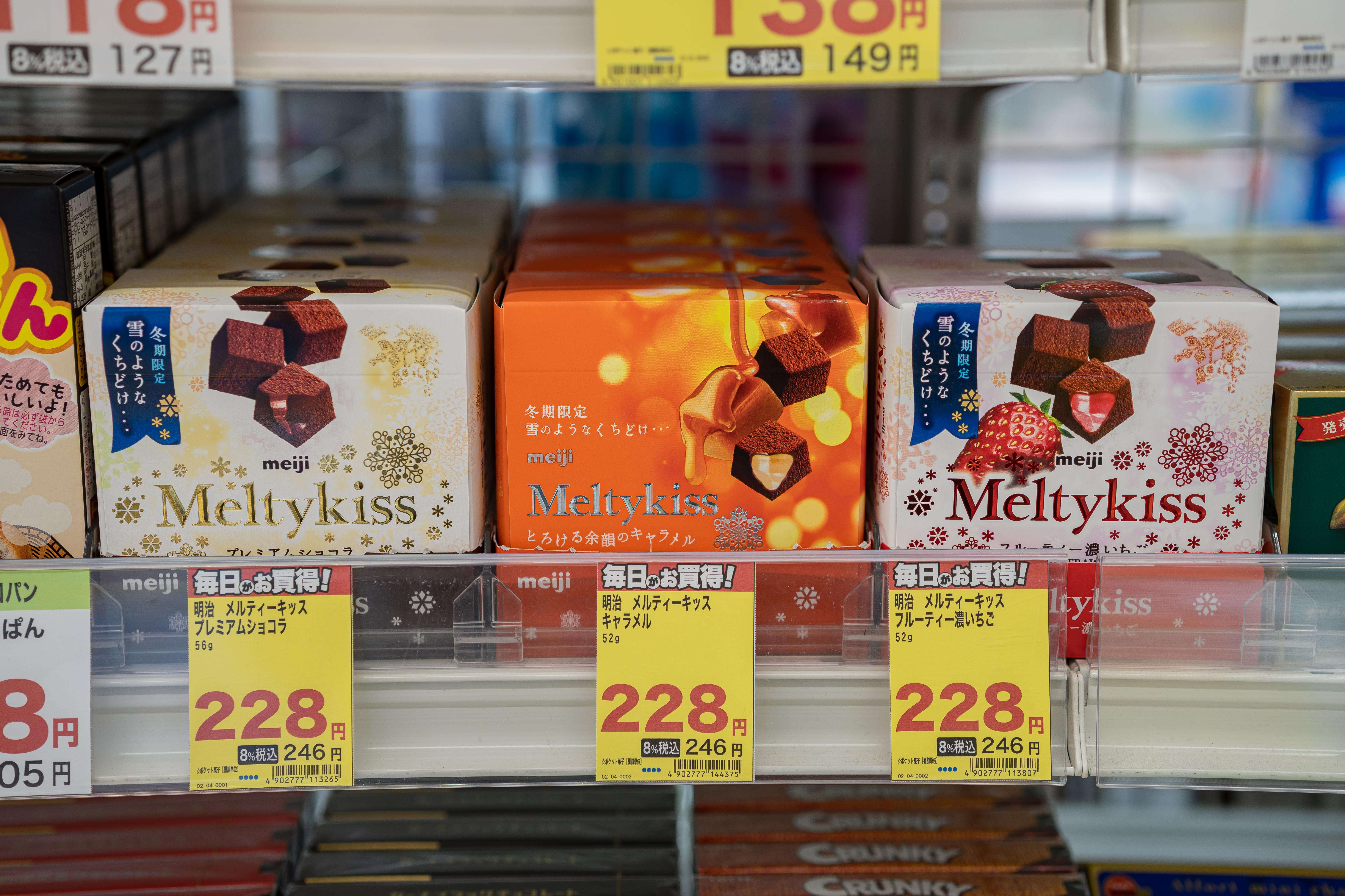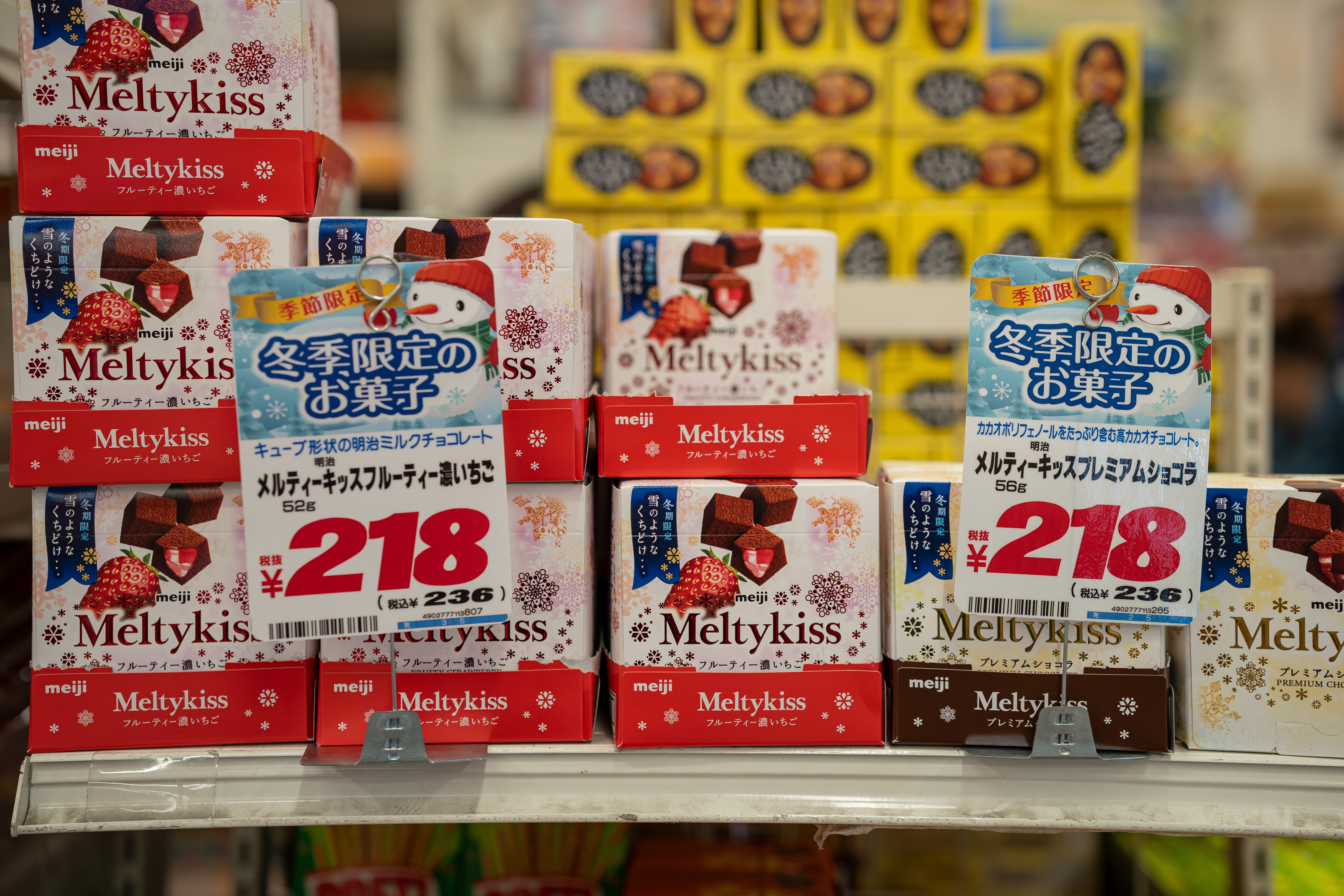 메이지 멜티키스는 일본의 편의점, 마트, 드럭스토어에서 판매하며 다양하고 대량의 제품을 구매하기 위해 돈키호테를 찾았습니다. 돈키호테는 면세도 되고 할인 쿠폰이 있으면 추가 할인도 받을 수 있기 때문에 과자를 대량으로 사기에 좋습니다.