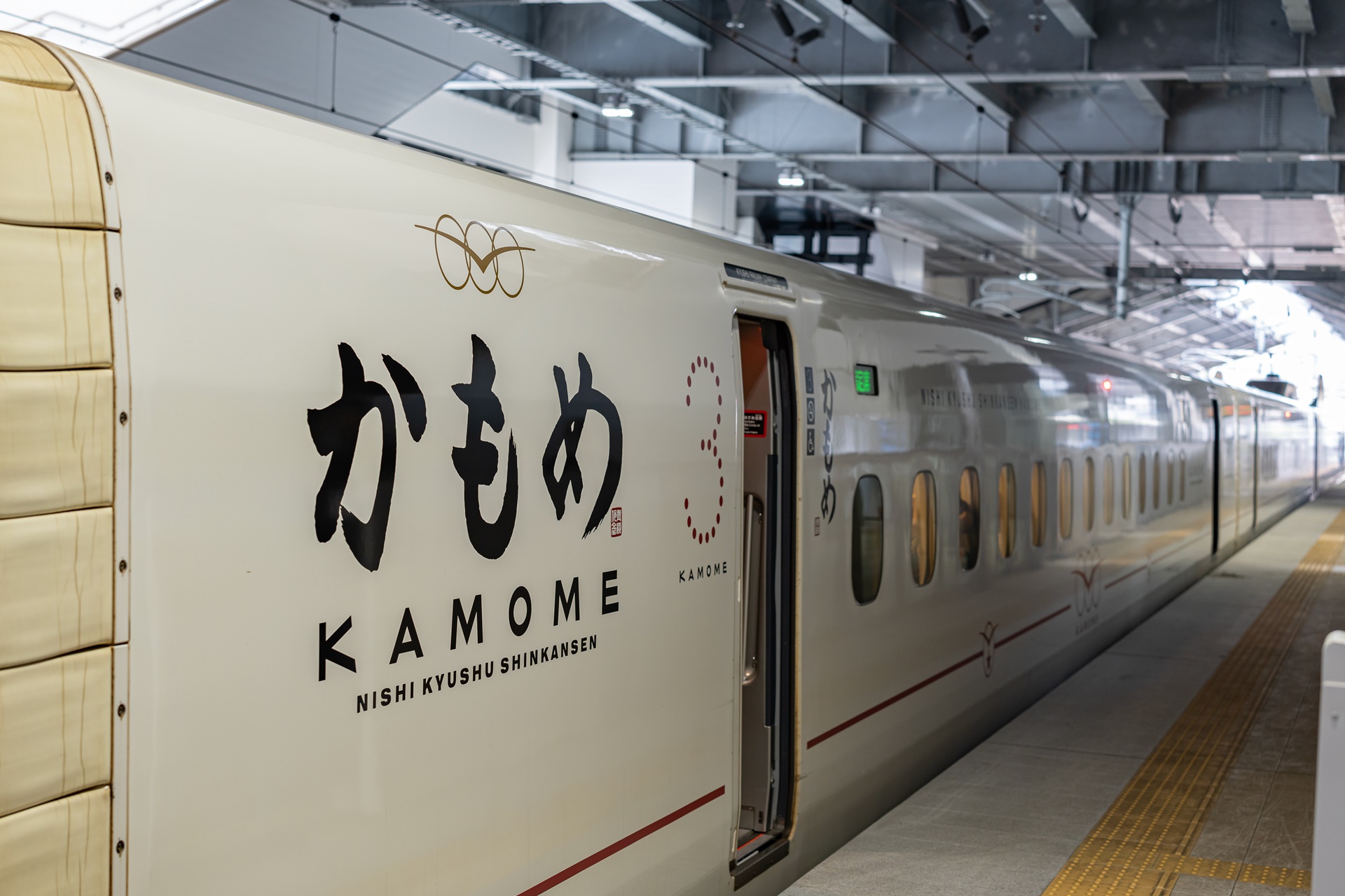 다케오 온천까지 이동하는 특급열차 가모메(カモメ, 갈매기) 가 들어옵니다.