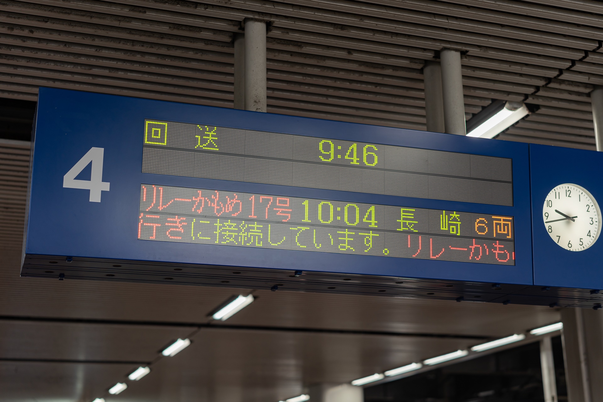 개찰구를 지나 나가사키로 가는 열차가 정차하는 4번 승강장으로 이동합니다.