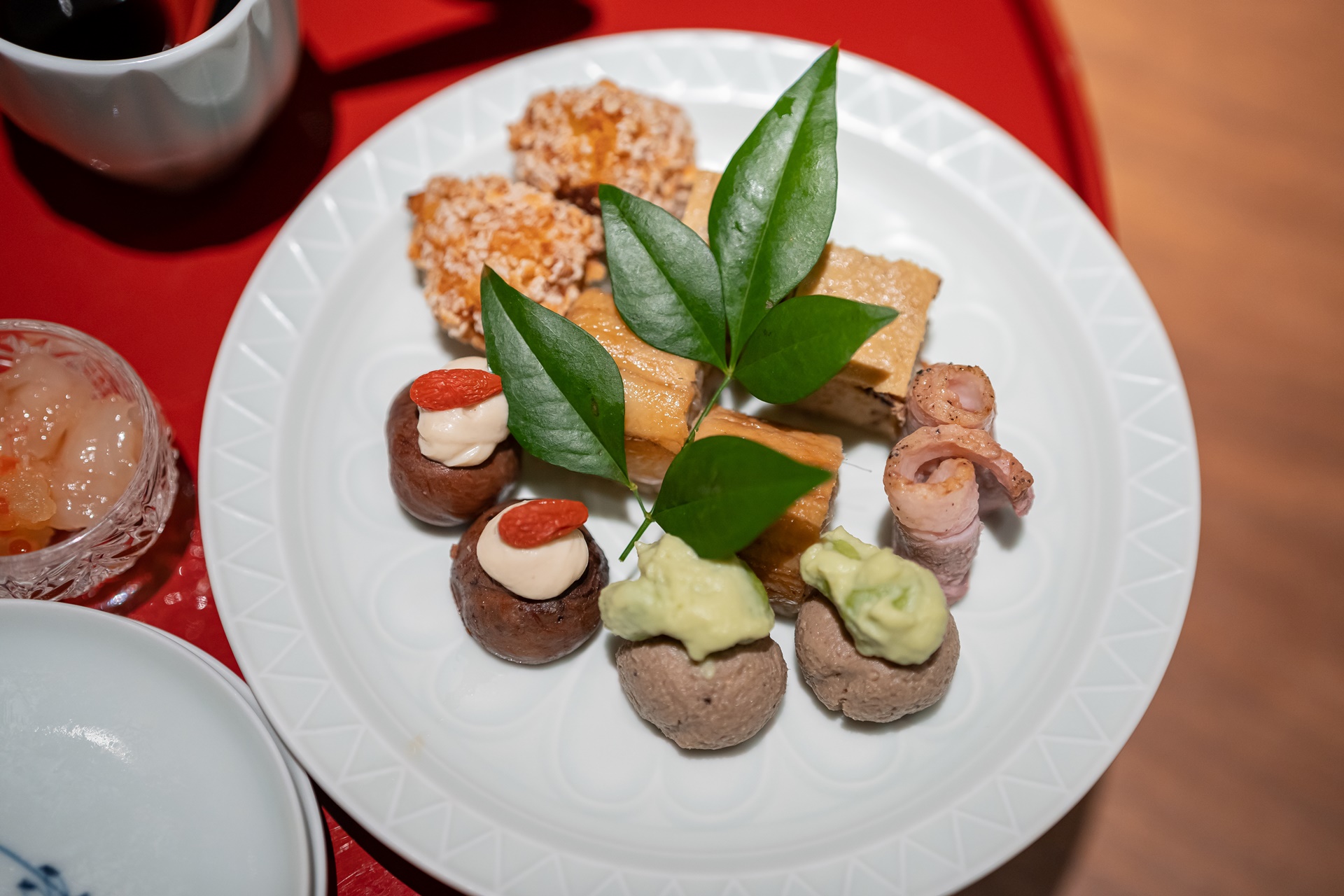 료칸요리의 꽃인 호라쿠모리에는 제철 생선회와 체철 식재료를 사용하여 계절을 이쁘게 담은 요리들이 나오며 핫슨이라 하는 8가지 요리가 나옵니다.