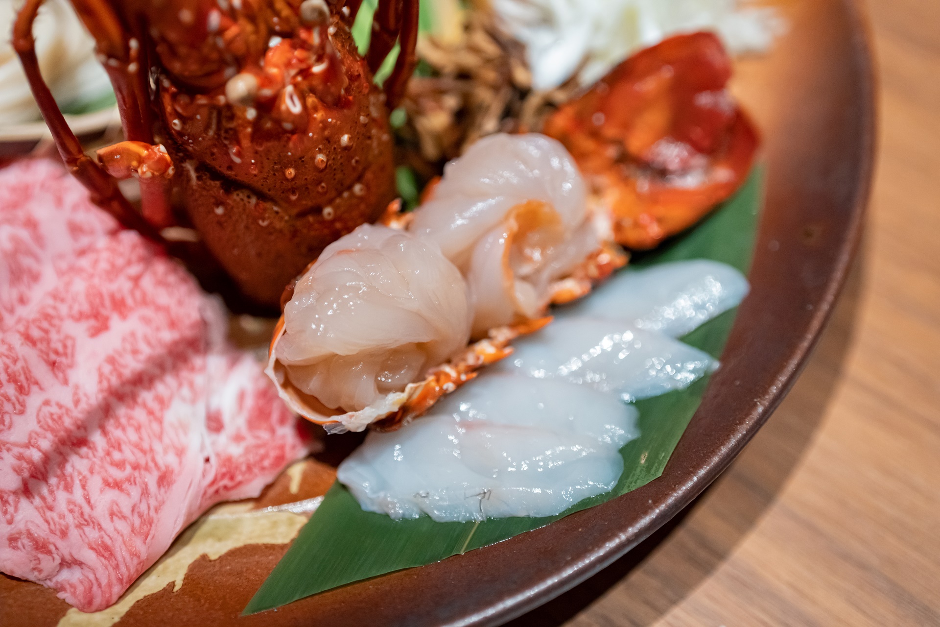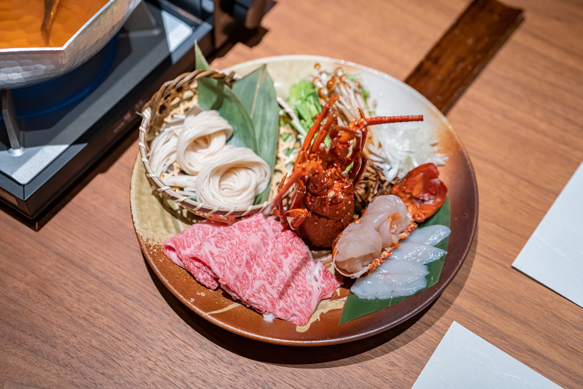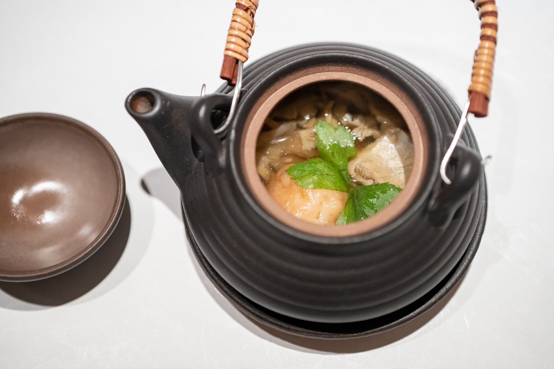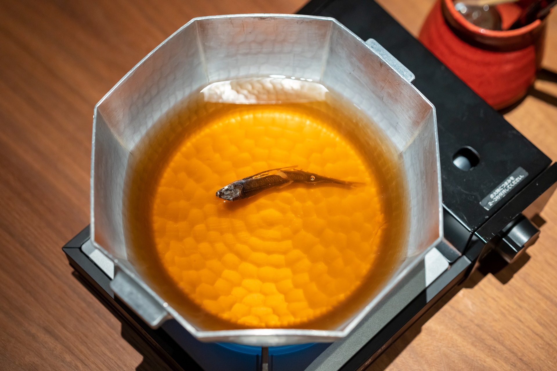 나가사키 지역은 구워서 말린 야키아고焼き顎(날치) 로 육수를 많이 내는데 이번 메인 요리에도 날치 육수를 이용한 샤브샤브 요리가 나왔습니다. 날치 육수는 최근에는 라멘에도 많이 사용되며 일본 전국적으로 인기가 높습니다. 멸치 육수보다는 조금 더 달고 감칠맛이 있는 육수입니다.