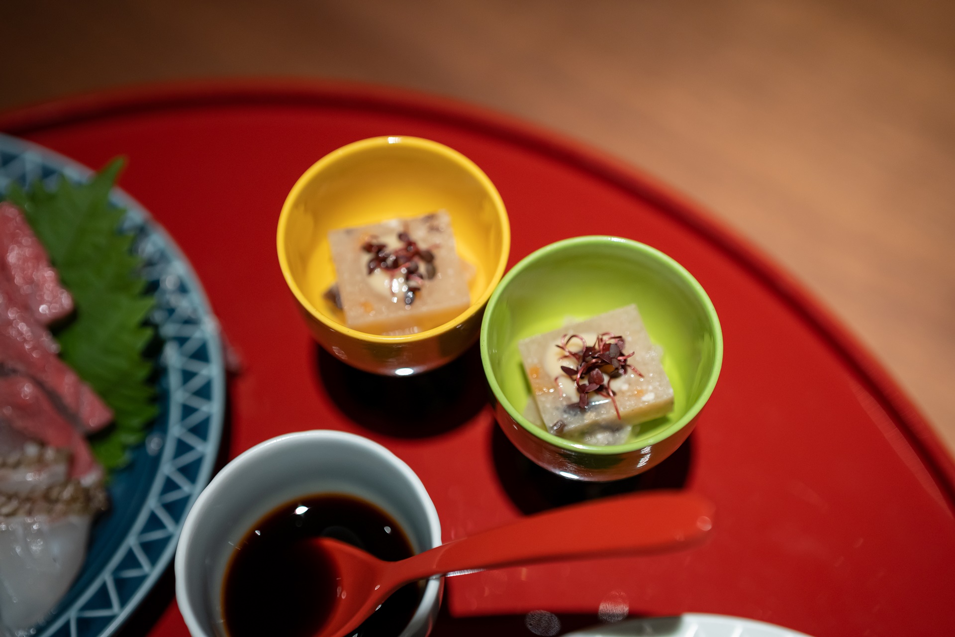 간자라시는 시원한 흑당 물에 단고(떡)과 과일을 넣어 먹는 나가사키의 요리로 호시노 리조트 카이 운젠의 간자라시에는 나가사키에서 많이 나는 과일 비파도 들어 있었습니다.