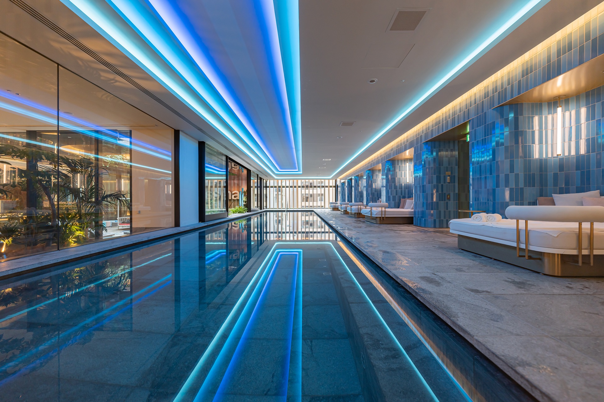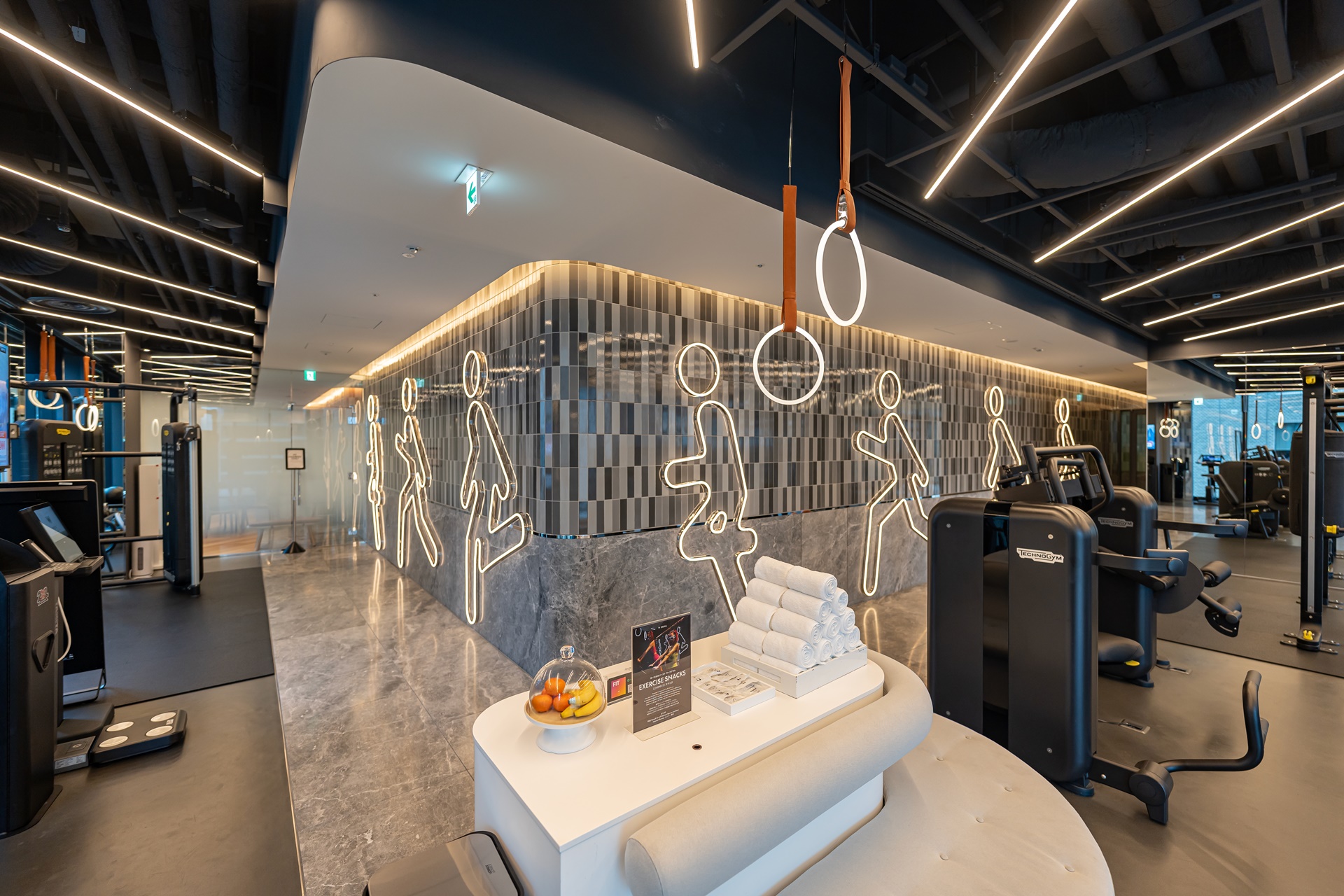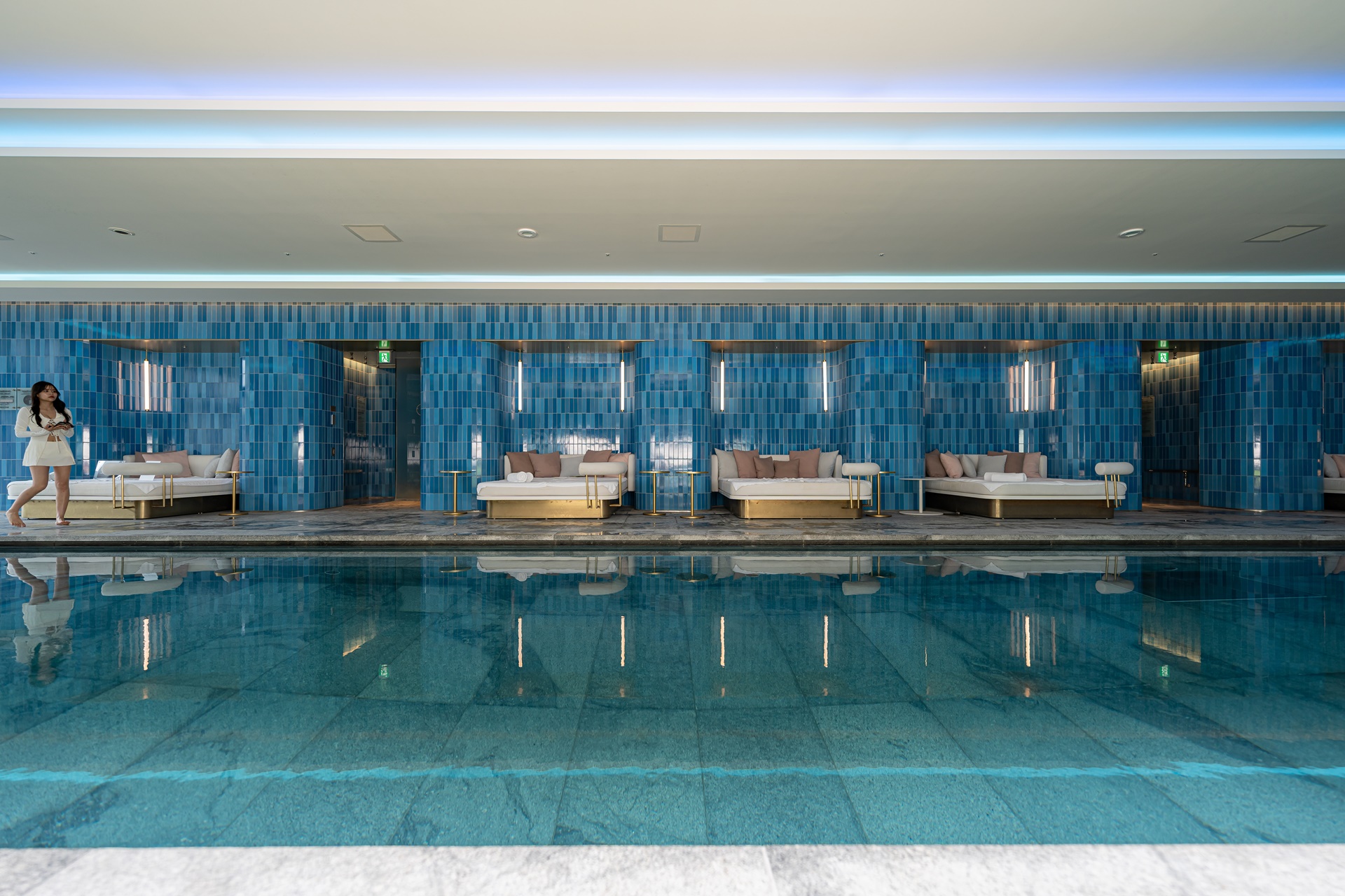 W 오사카 호텔의 부대시설로 스파, 수영장, 휘트니스 등이 있는데 한 층에 모여 있습니다.