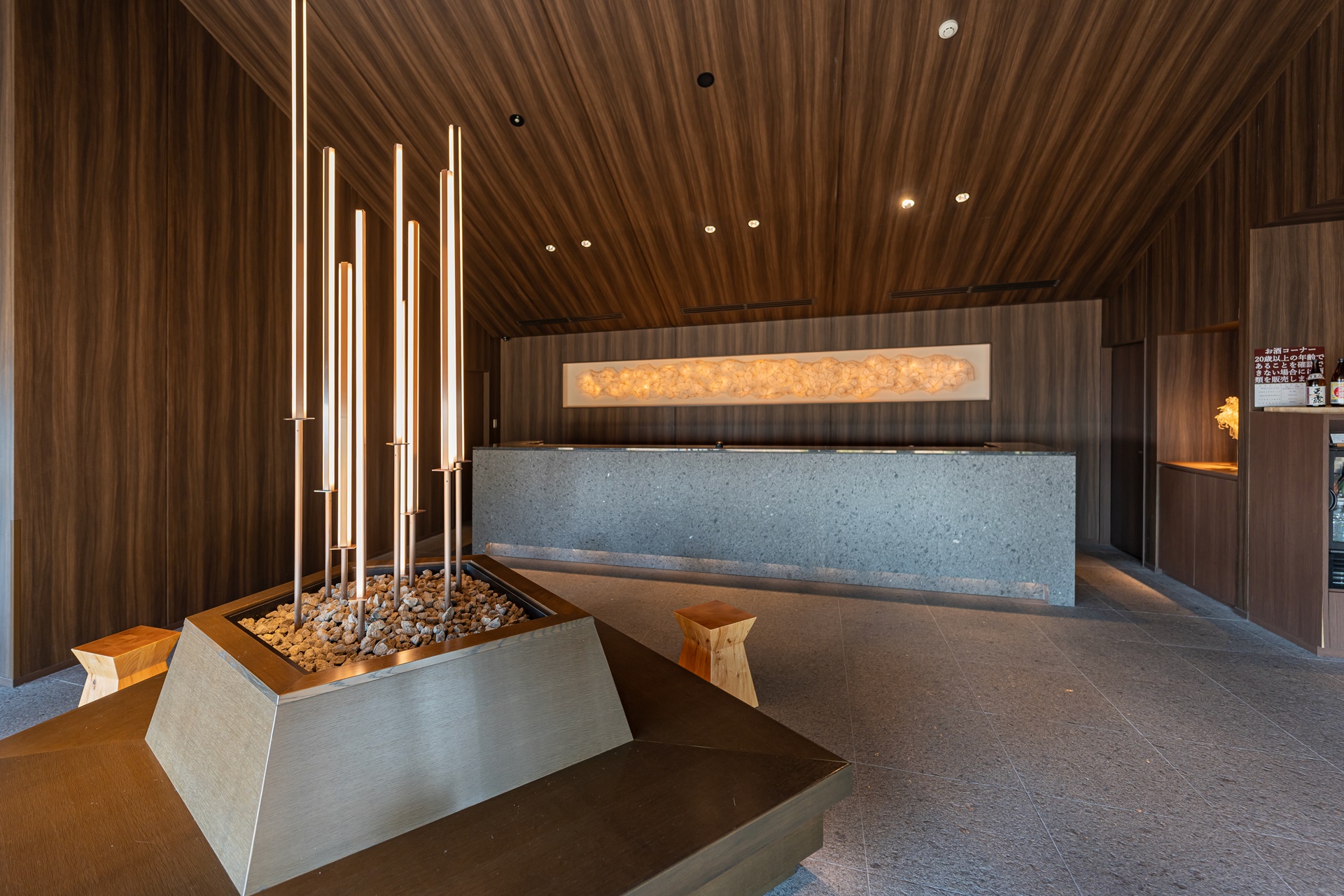 다른 카이의 시설과 같이 시설이 위치한 지역의 건축 재료(화강암, 편백나무, 삼나무) 등을 사용여 지었으며 그 흔적들은 로비에서 부터 찾아 볼 수 있습니다.