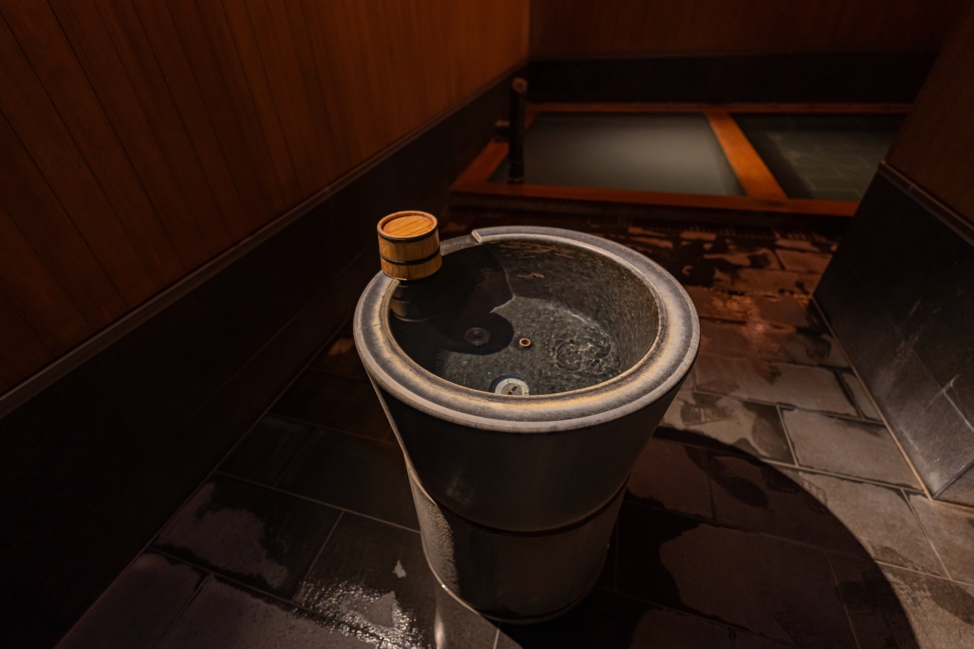 세면대와 온천 욕을 즐길 수 있는 욕조