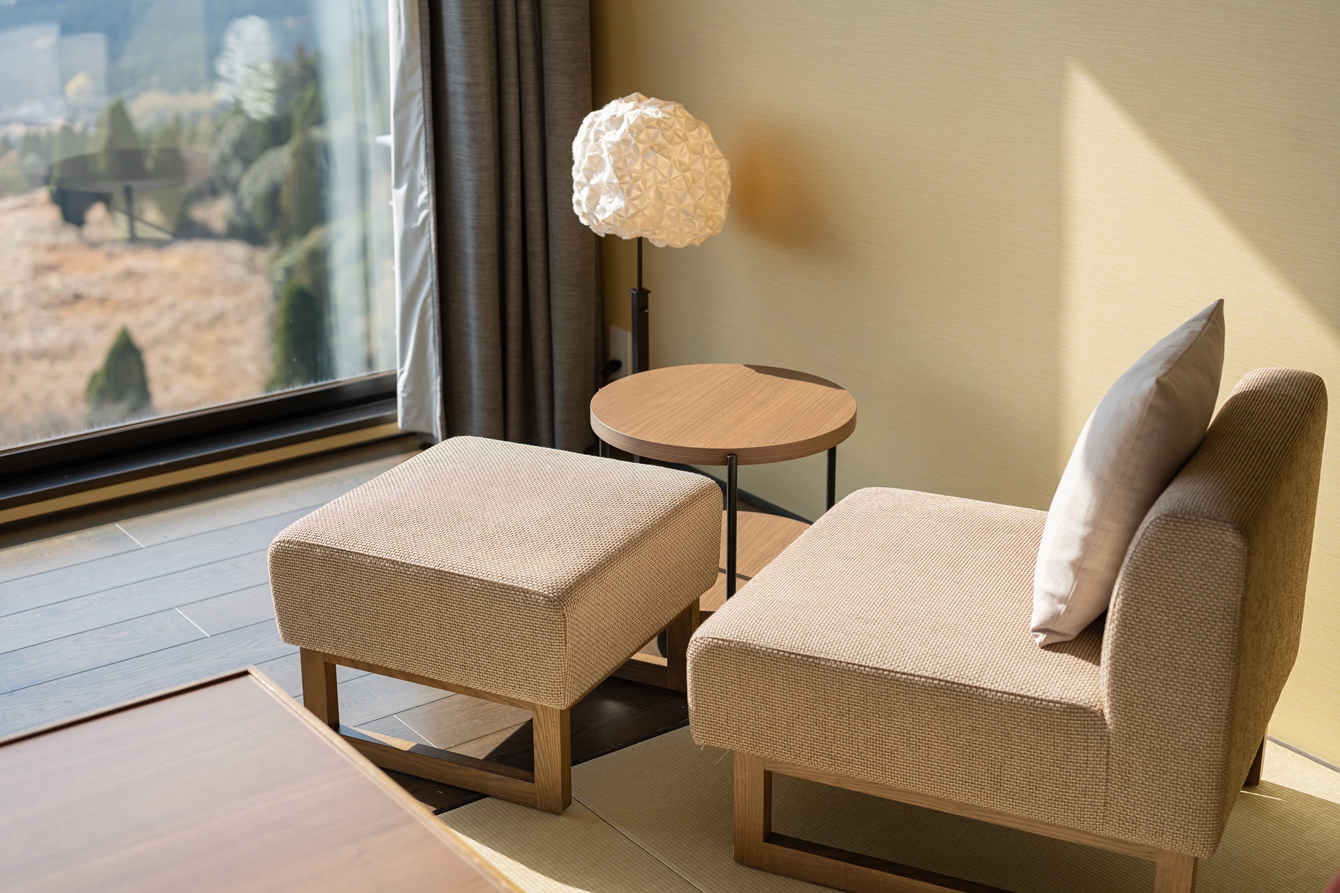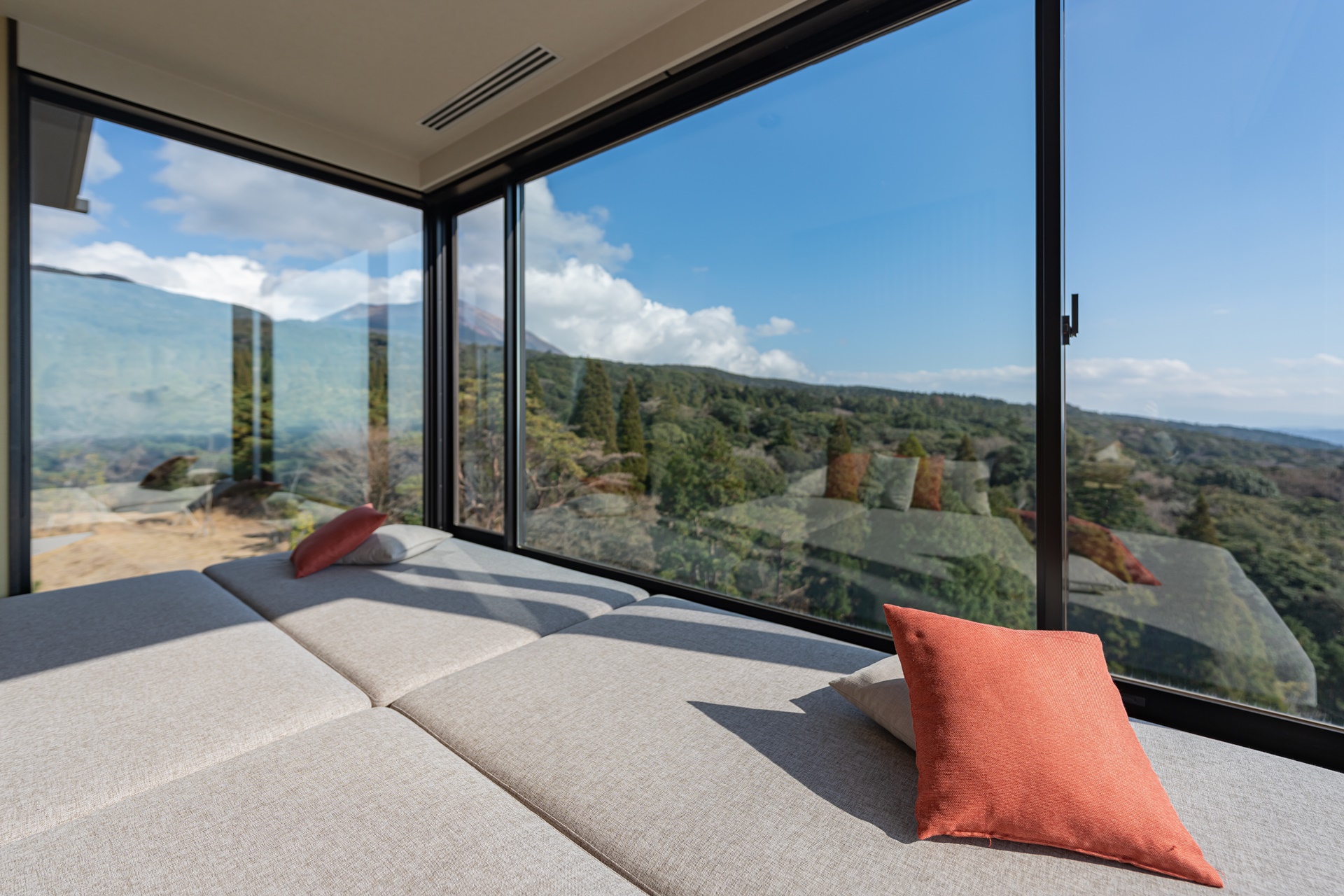 기리시마의 멋진 풍경도 감상하며 누워서 뒹굴 거릴 수 있도록 안쪽에 넓은 공간이 마련되어 있습니다.