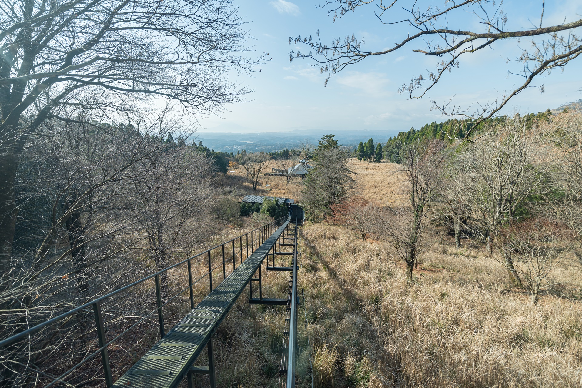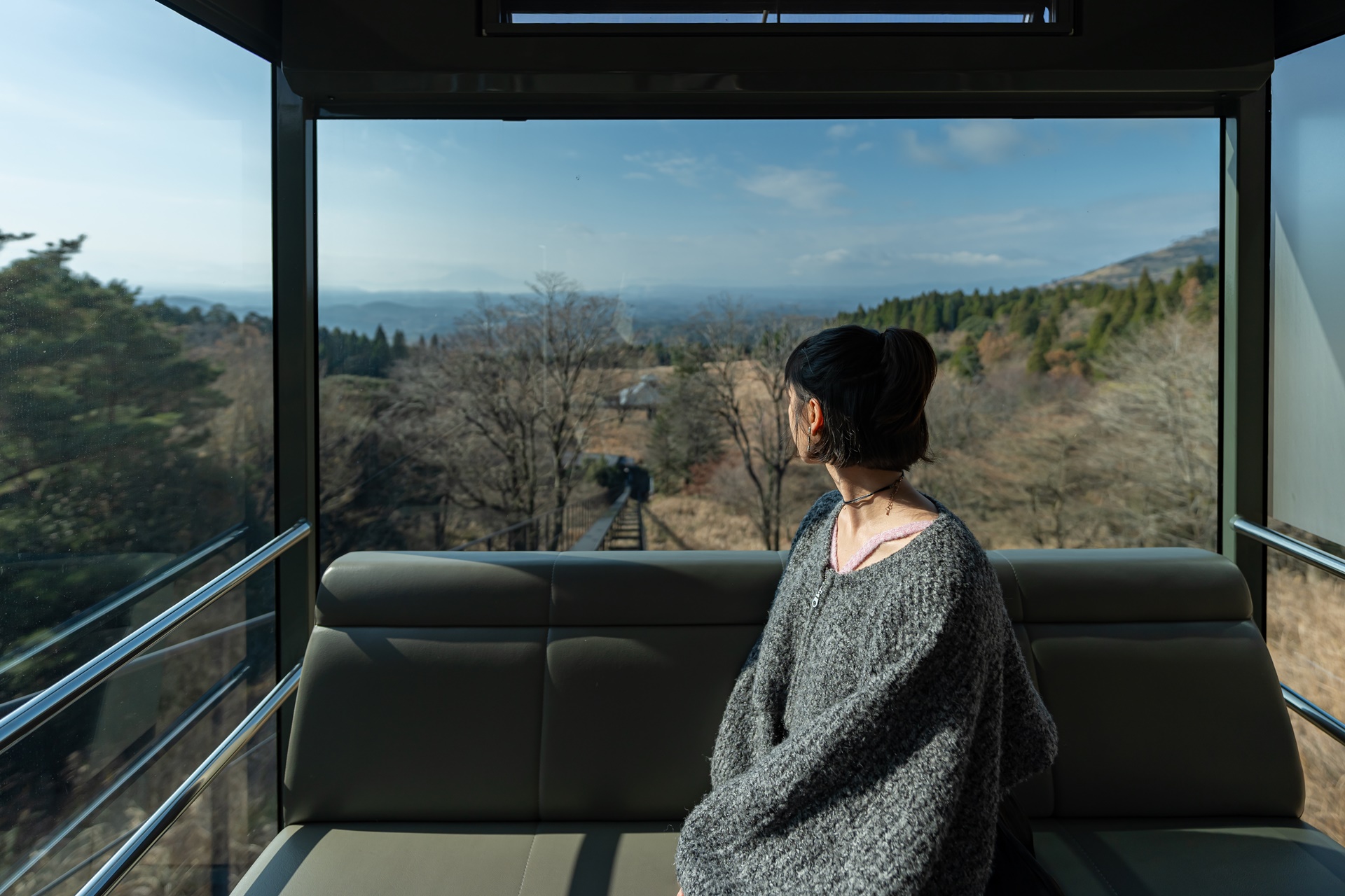 재미있는 슬로프로 온천으로 이동, 기리시마의 풍경을 감상하며 내려가면 2분이 금방 지나갑니다.