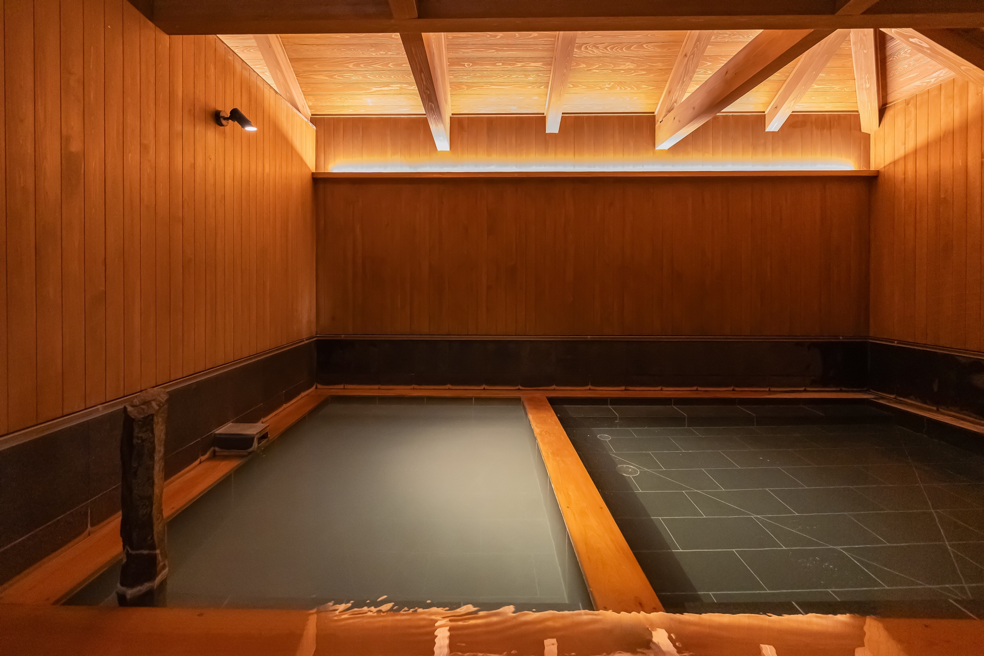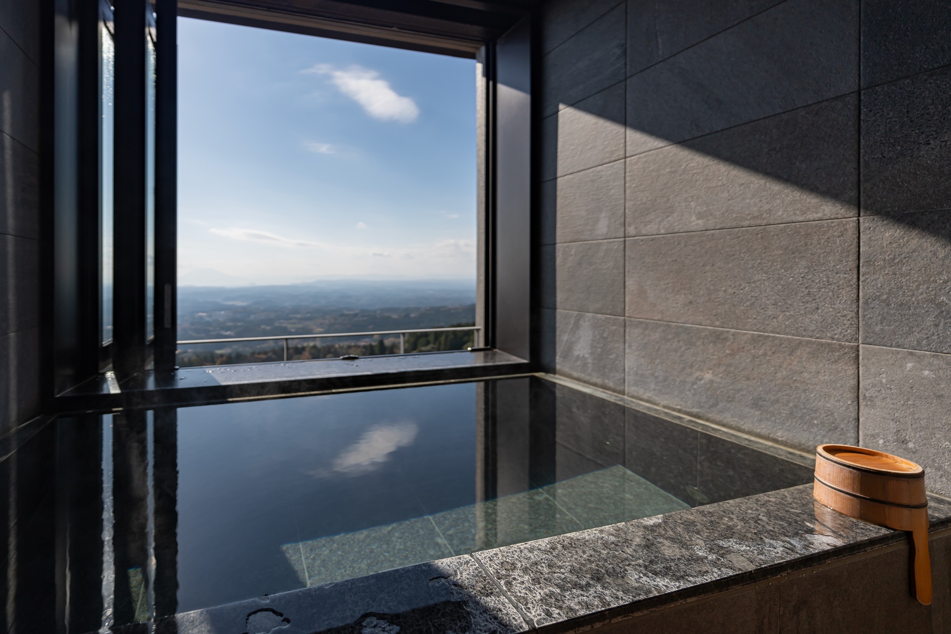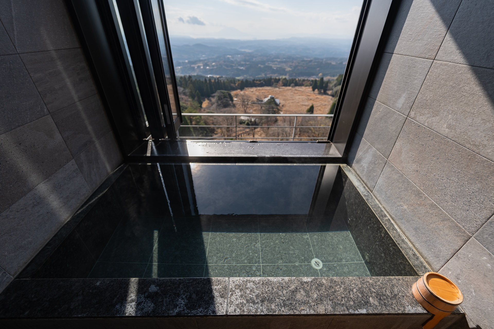 창문을 활짝 열으면 멋진 풍경을 감상하며 따뜻한 온천을 즐길 수 있는 노천 온천탕이 완성됩니다.