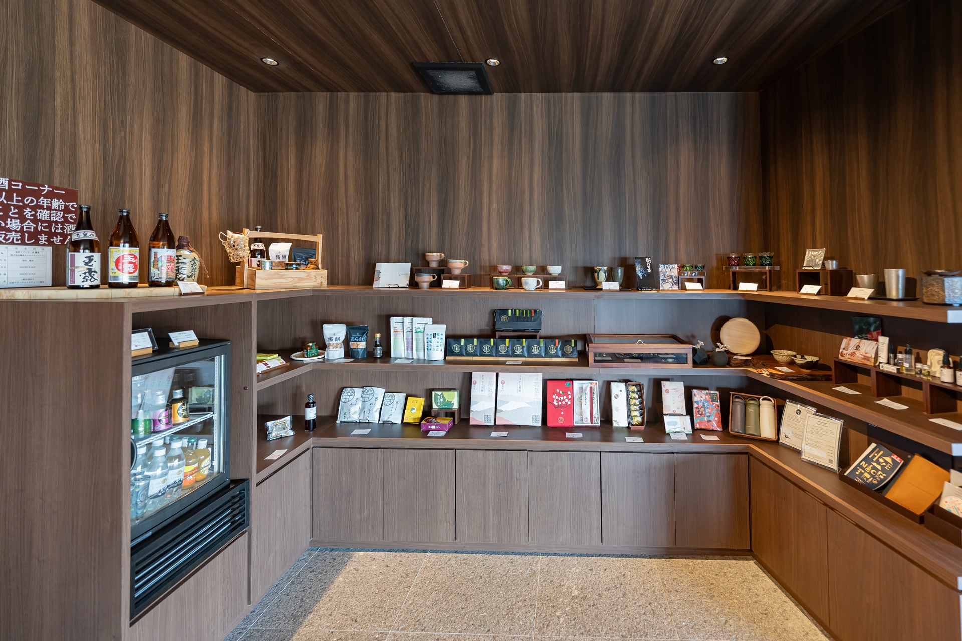 로비 옆에는 가고시마와 카이 기리시마의 기념품을 전시하고 있으며 가고시마의 도자기, 유리공예 품(사쓰마 키리코), 일본 생산량 1~2위를 다투는 녹차, 간장, 소주 등을 판매하고 있었습니다.