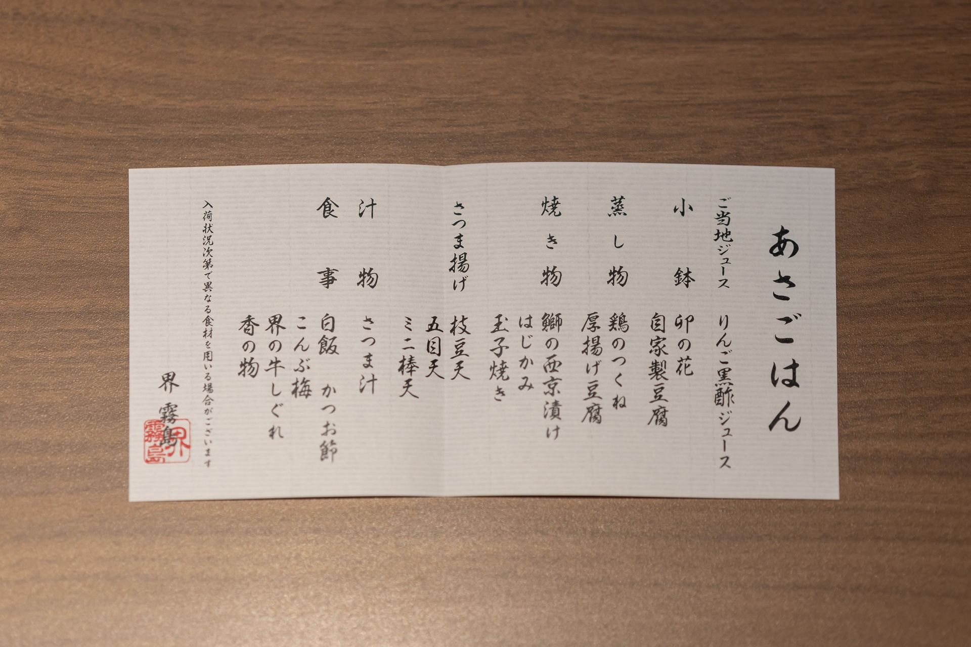 조식도 이렇게 메뉴가 다 적혀있는 종이가 적혀 있습니다.