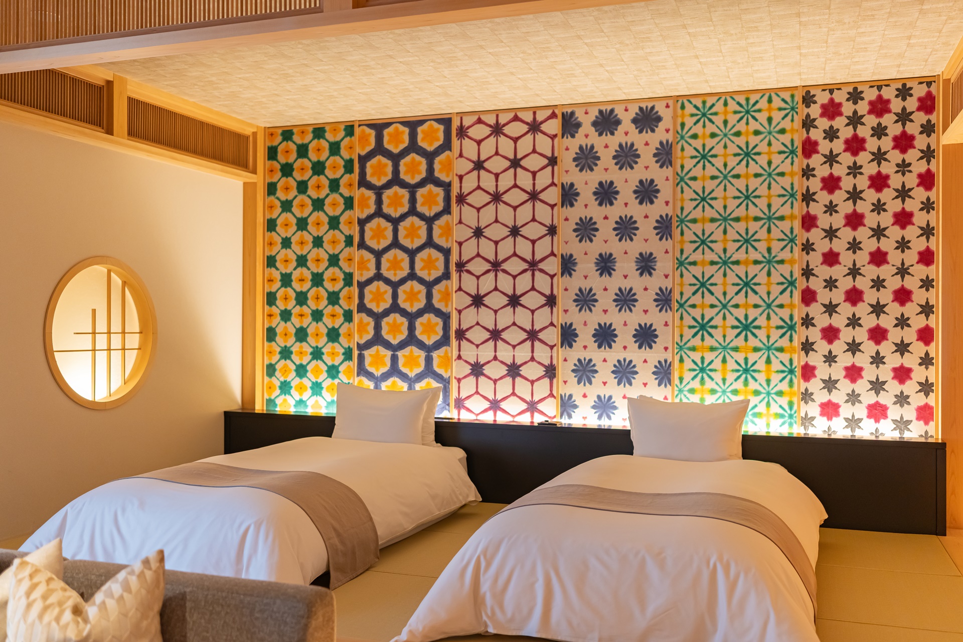 일본의 한지인 도쿠지 일본 종이로 장식된 침실