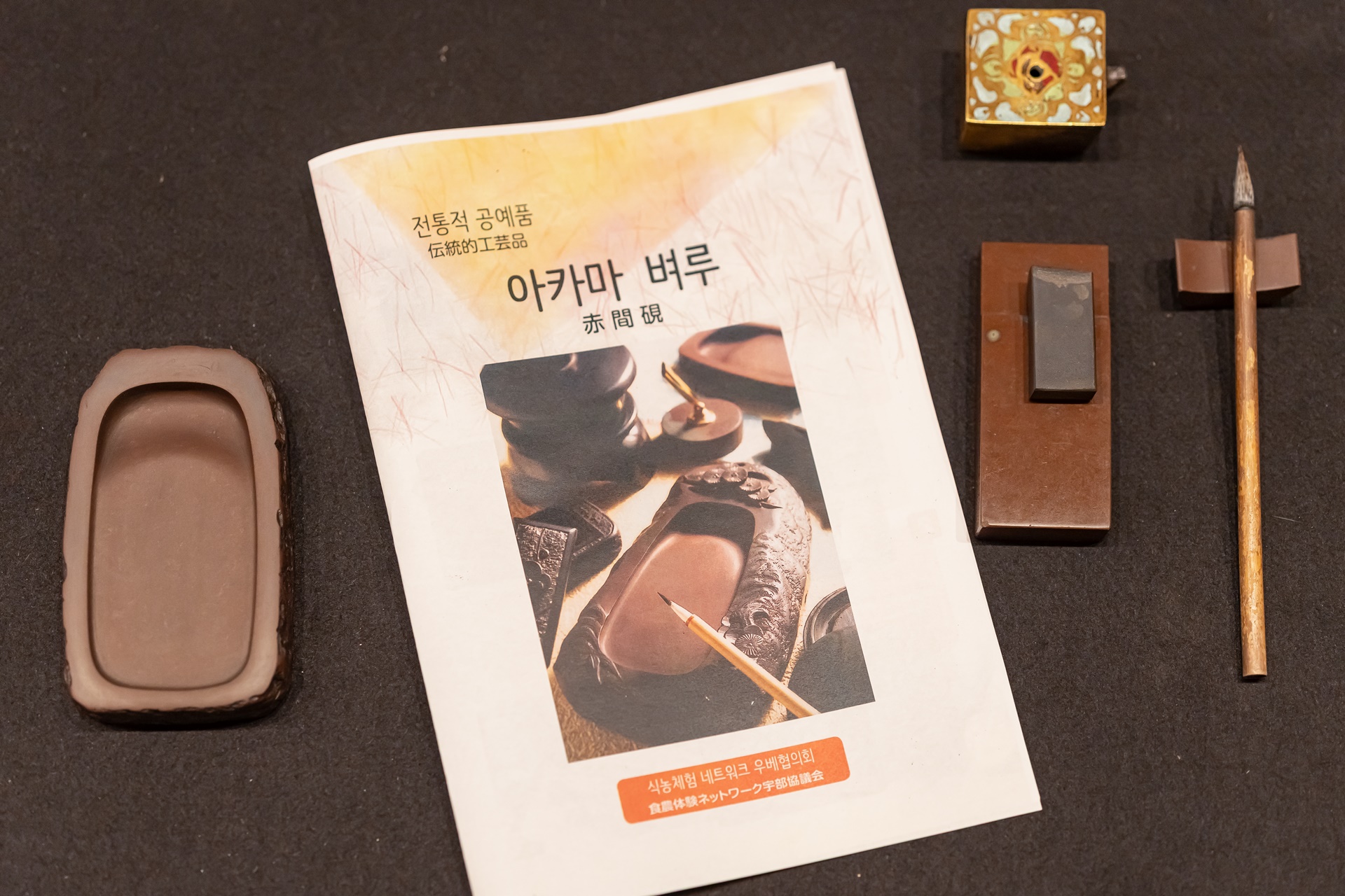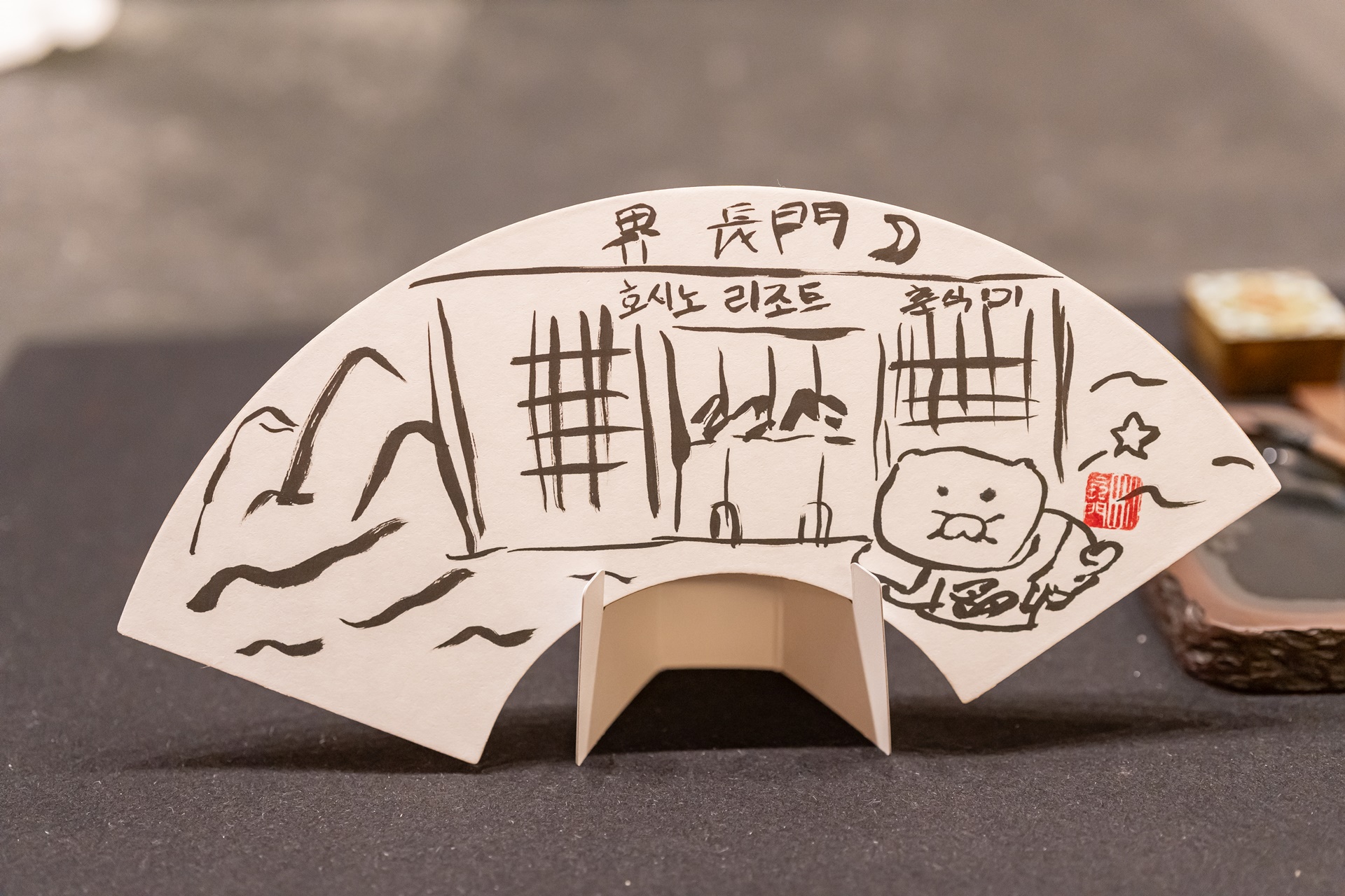 호시노 리조트 카이 나가토가 있는 나가토 지역은 일본의 벼루 생산지로 유명합니다. 이로 인해 이곳에서는 야마구치현의 전통 벼루인 아카마 벼루를 사용하여 부채에 붓글씨를 써 보는 체험을 할 수 있으며 완성된 부채는 기넘으로 가져갈 수 있습니다.