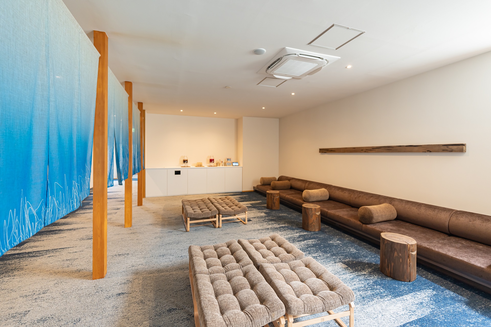 조명은 과하게 밝지 않고, 은은하게 실내를 감싸는 형태로 배치되어 있고, 이는 시각적 자극을 최소화하여 여행자가 자연스럽게 속도를 낮추도록 유도합니다. 로비 곳곳에는 물 흐르는 소리, 목재의 질감, 자연에서 가져온 재질감이 스며 있어 공간 자체가 계곡의 분위기를 실내에서 그대로 느끼게 해 줍니다.