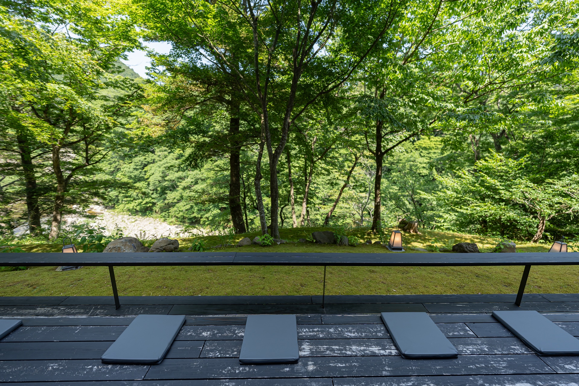 라운지 외부는 아키우 온천의 아름다운 풍경을 감상하며 시간을 보낼 수 있습니다.